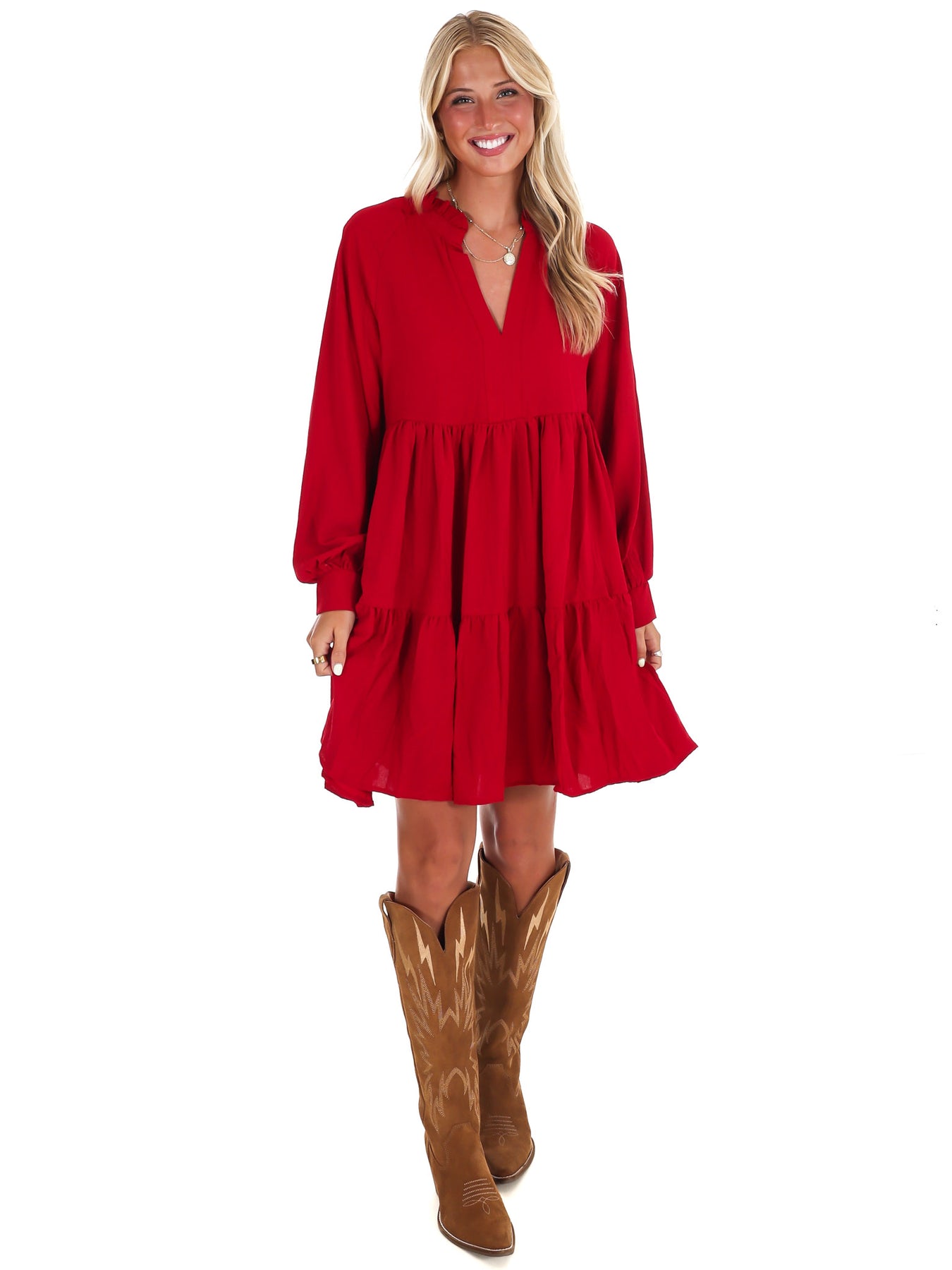 Elevate your everyday style with the Daily Affirmations Tiered Dress. Featuring a flattering notched neckline and long woven sleeves, this dress combines comfort with elegance. Its tiered design adds a playful, feminine touch while allowing effortless movement throughout your day. Perfect for work or weekend outings, this dress inspires confidence and grace wherever you go.