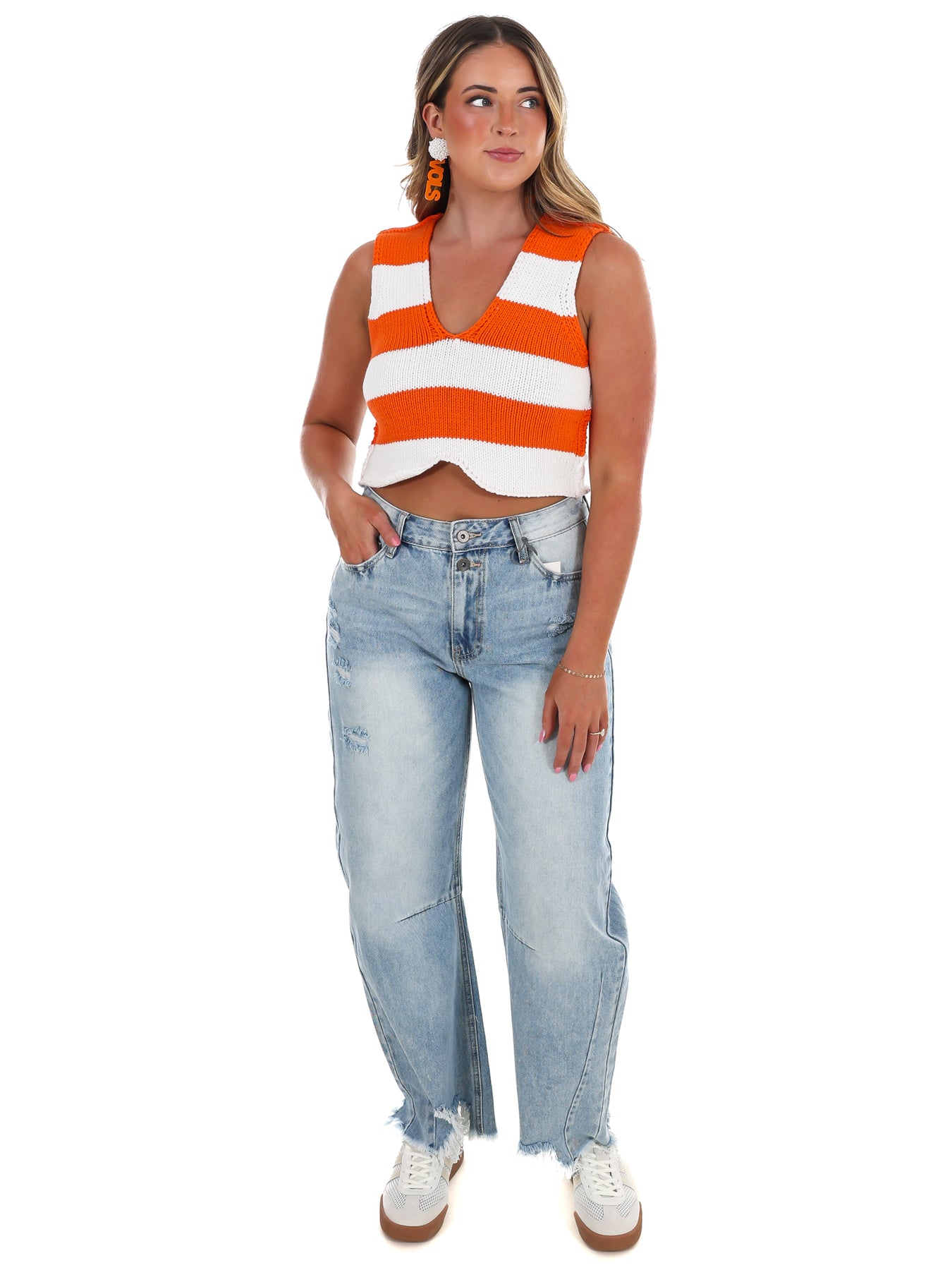 Elevate your athleisure game with our Halftime Hustle Stripe Cropped Top. The bold stripe pattern creates a slimming effect while the cropped length showcases your waistline. Perfect for high-intensity workouts or casual street style, this versatile top combines breathable fabric with fashion-forward design that moves with you.
