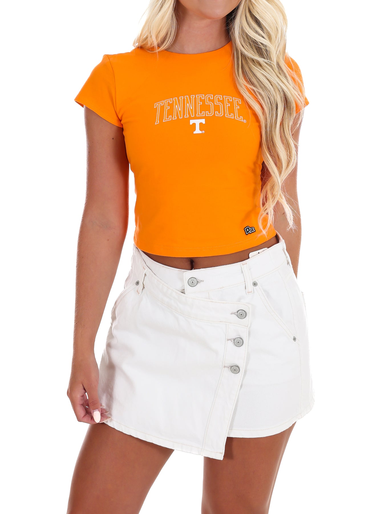 Cheer on the Volunteers in the University of Tennessee Comeback Top! This playful crop top from the Gameday Collection features a flirty open back, keeping you cool and stylish while you root for your team. Perfect for game day fun and showing off your school pride with a fresh twist.
