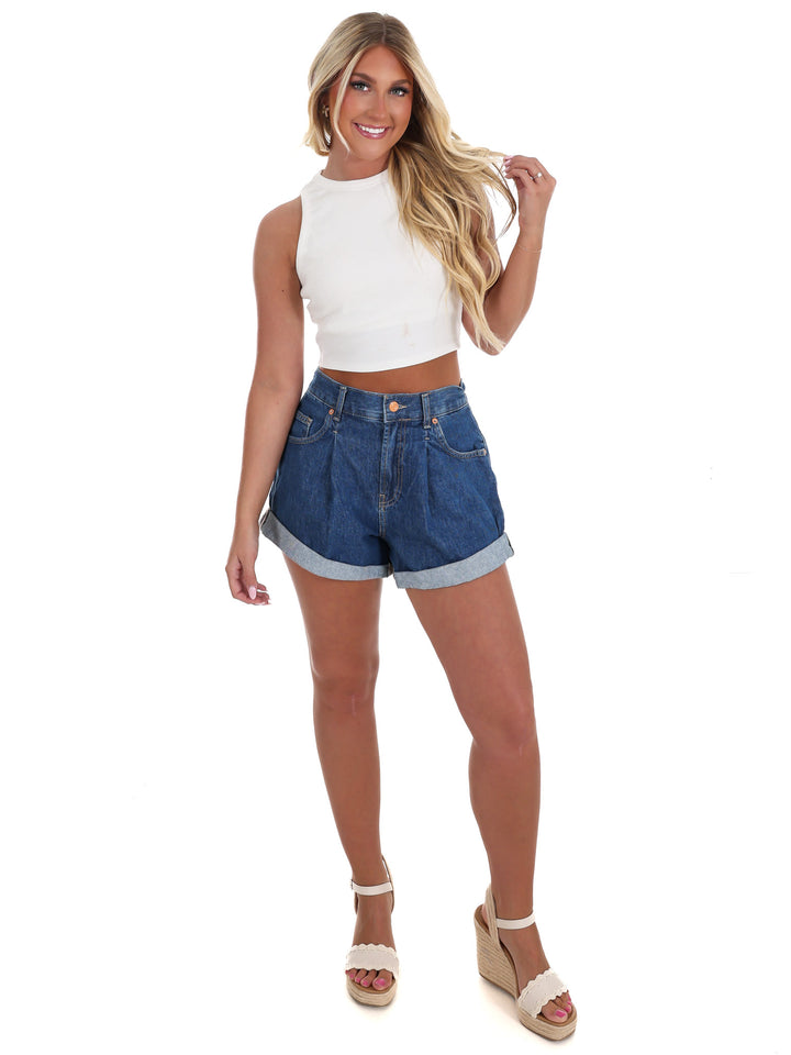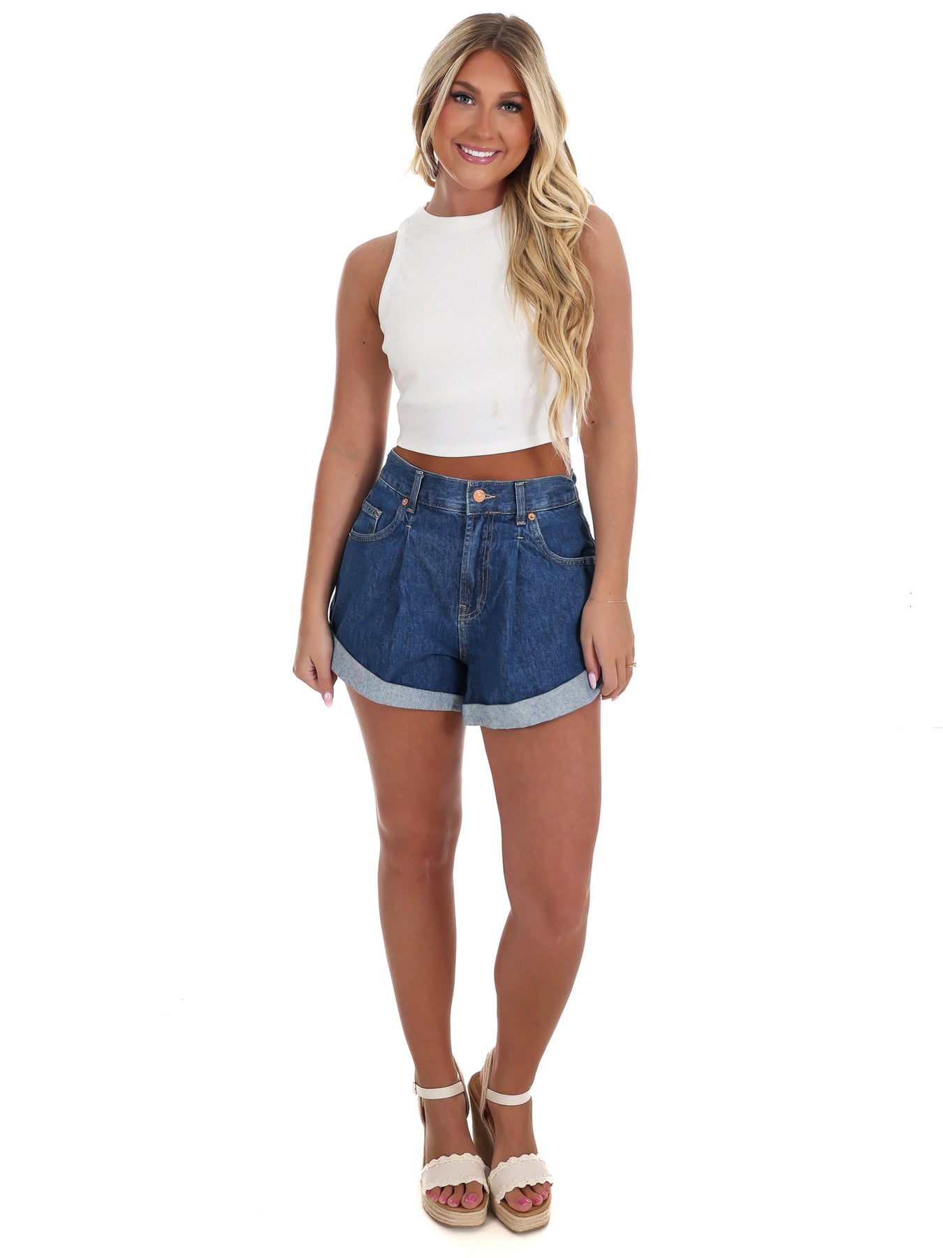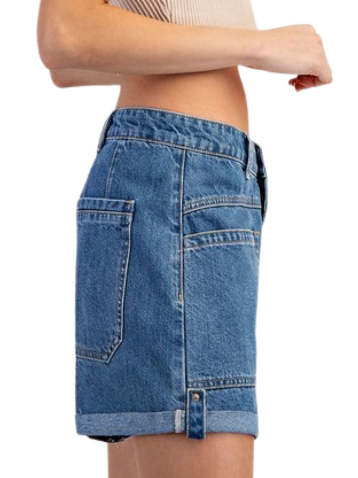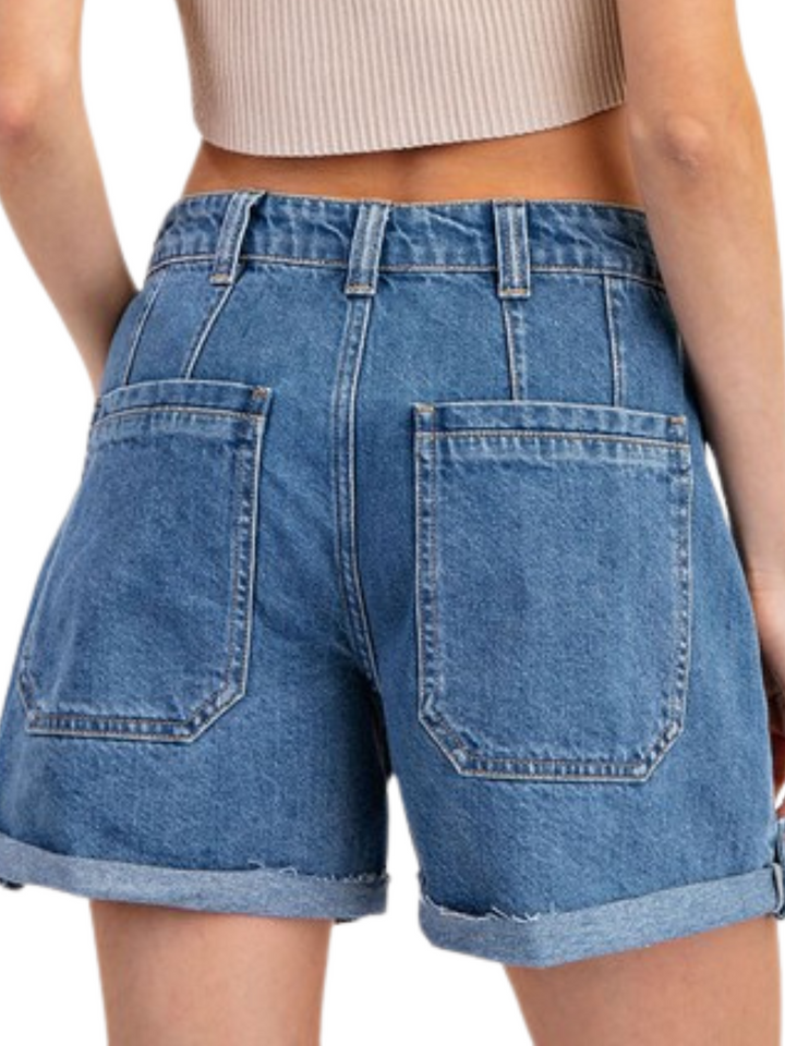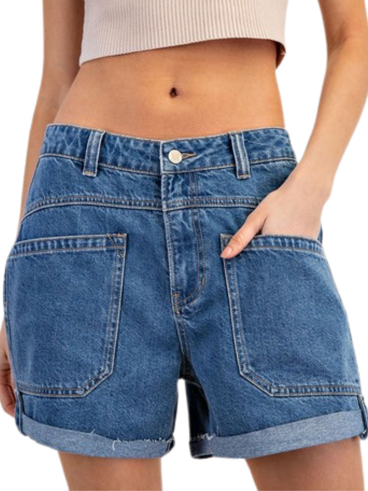 Roll your way through summer in these One Way or Another denim shorts with a playful rolled hemline and a convenient patch pocket. Whether you're hitting the beach or exploring the city, these shorts have got you covered (literally).