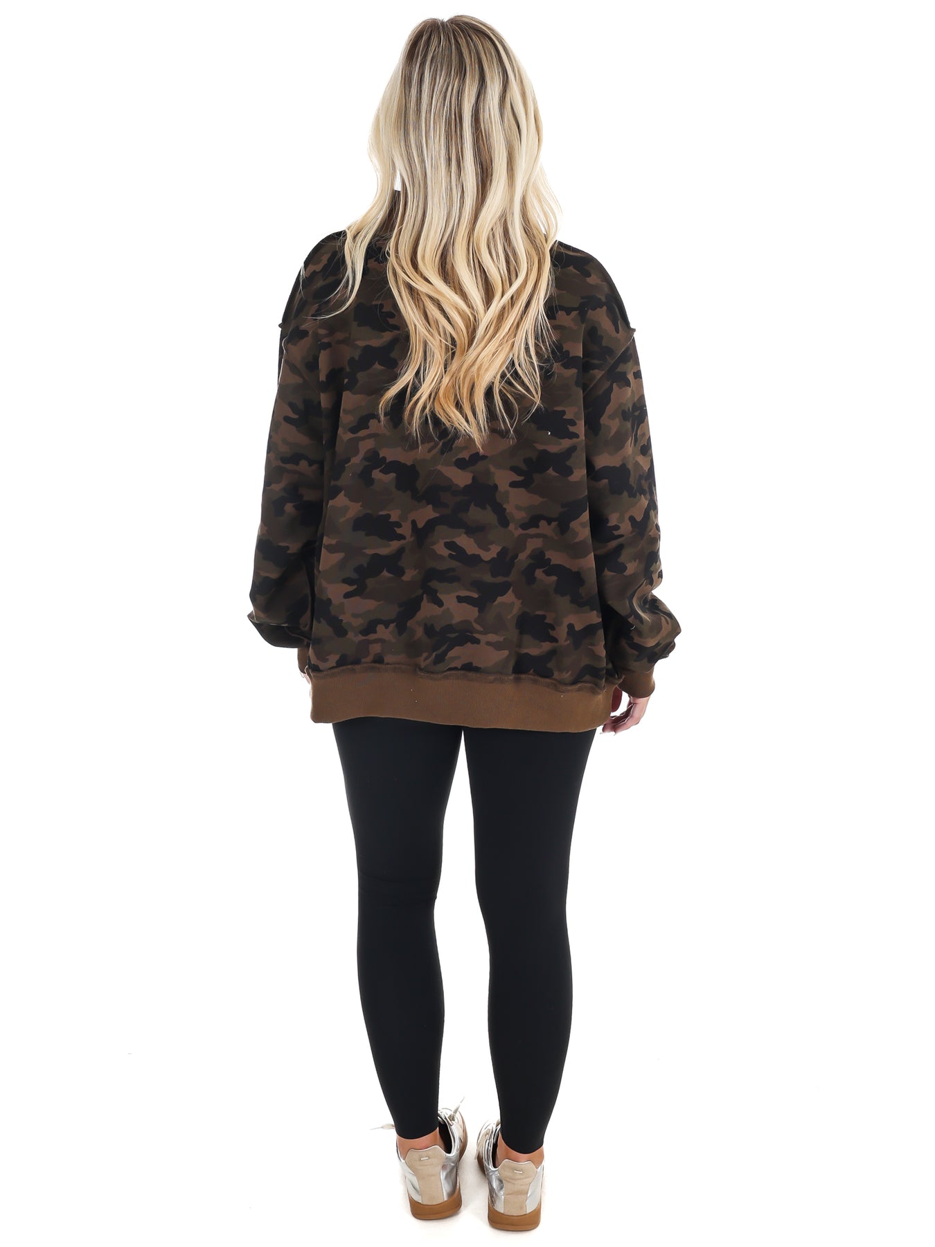 Step into the wild side with our Camo Mock Neck Sweatshirt—where tactical vibes meet cozy comfort. The classic camouflage pattern brings an edgy, adventurous edge to your everyday rotation, while the mock neck adds a touch of structured style. Perfect for layering or wearing solo, this sweatshirt keeps you looking effortlessly cool whether you're heading out for weekend adventures or just keeping it casual at home.