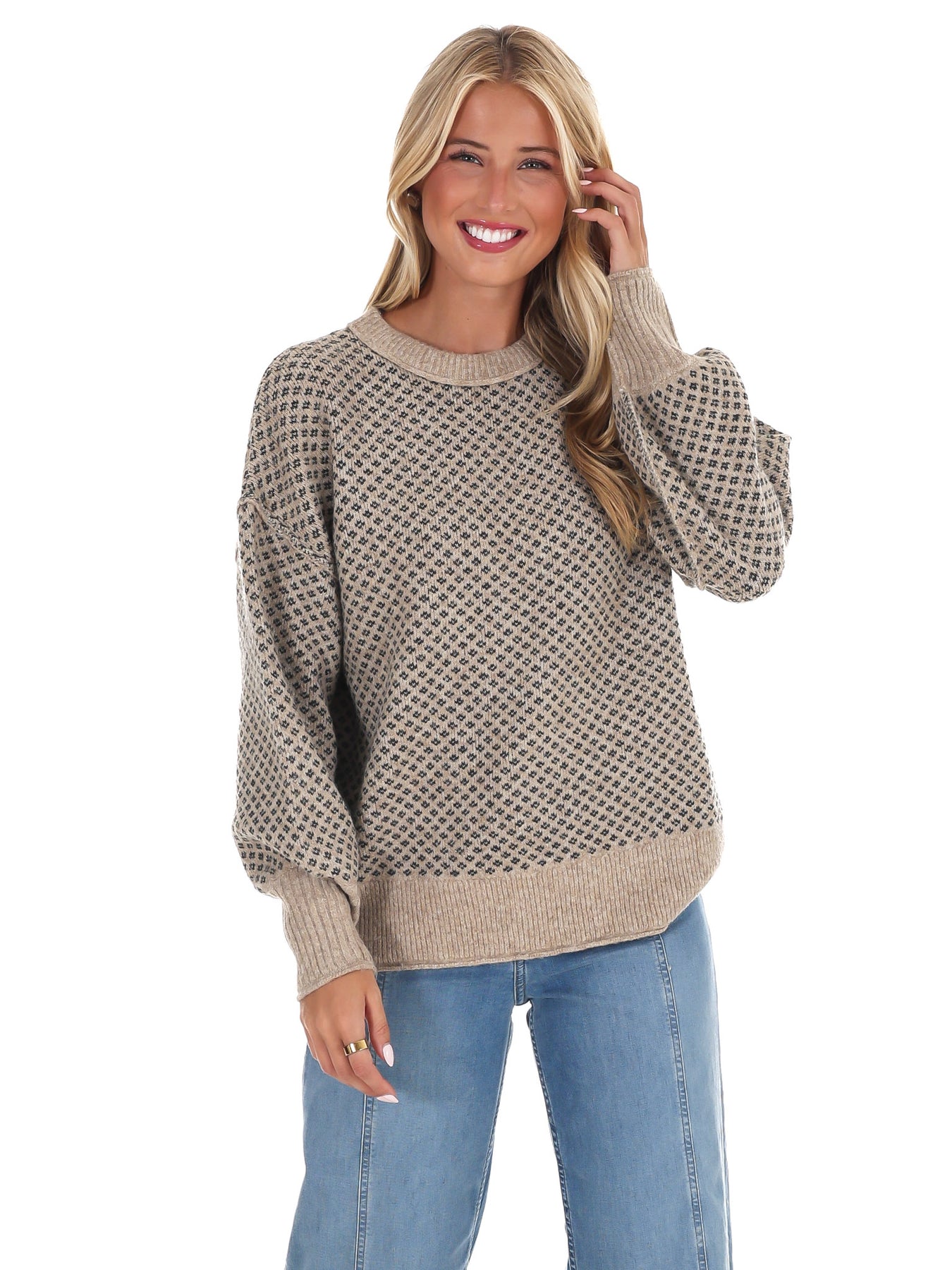 The Fireside Chats Knit Sweater is a comforting addition to your wardrobe, crafted with a delicate mini jacquard pattern and a classic crew neck. Its long sleeves provide gentle warmth, ideal for embracing cooler moments with ease. Designed to support your everyday comfort, this sweater offers a cozy fit and timeless style to keep you feeling confident and cared for.