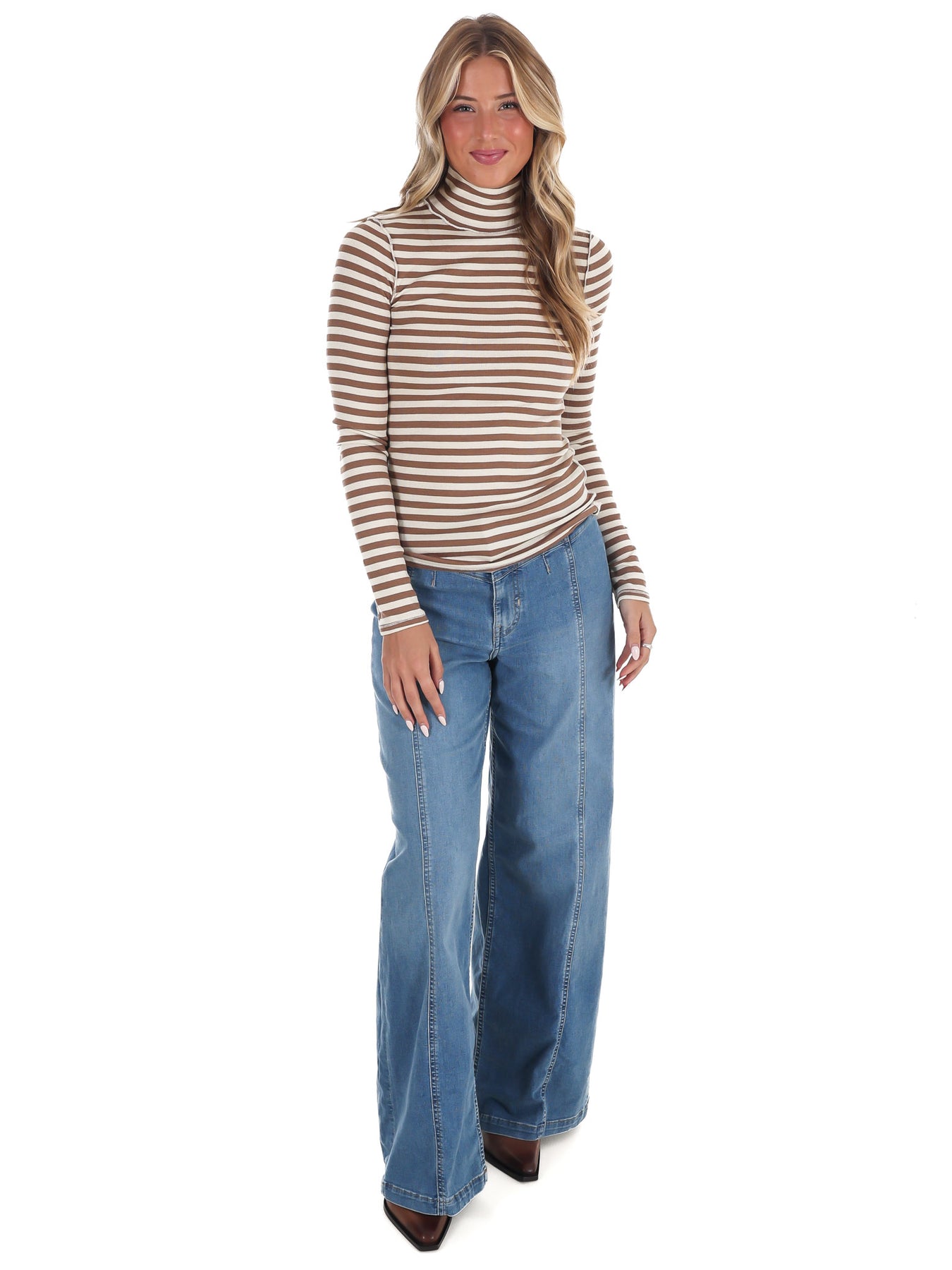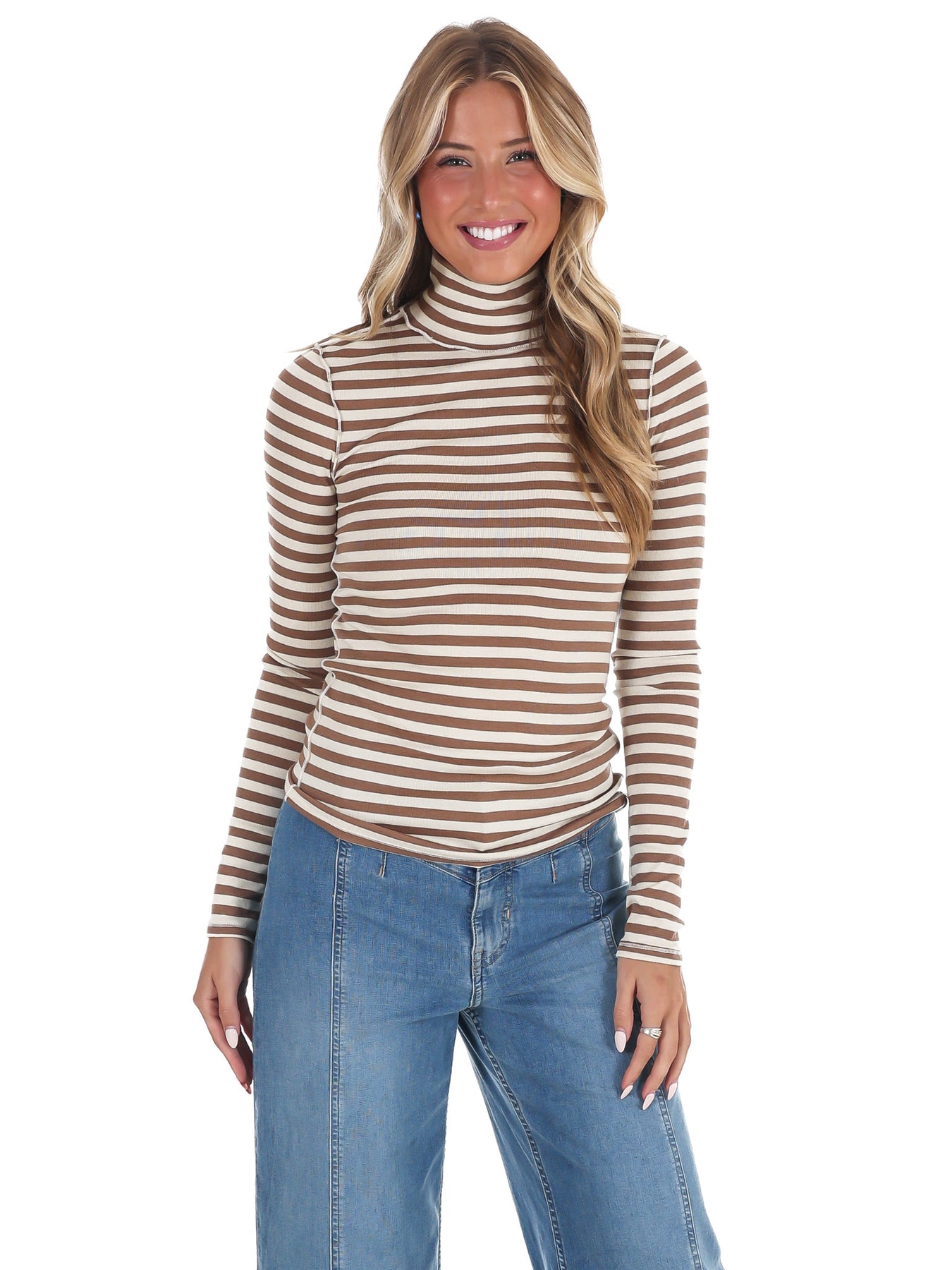 The most essential layering piece from Free People's We The Free collection, featured in a striped fabrication and slim-fitting silhouette with a turtle-neckline and long-sleeves.