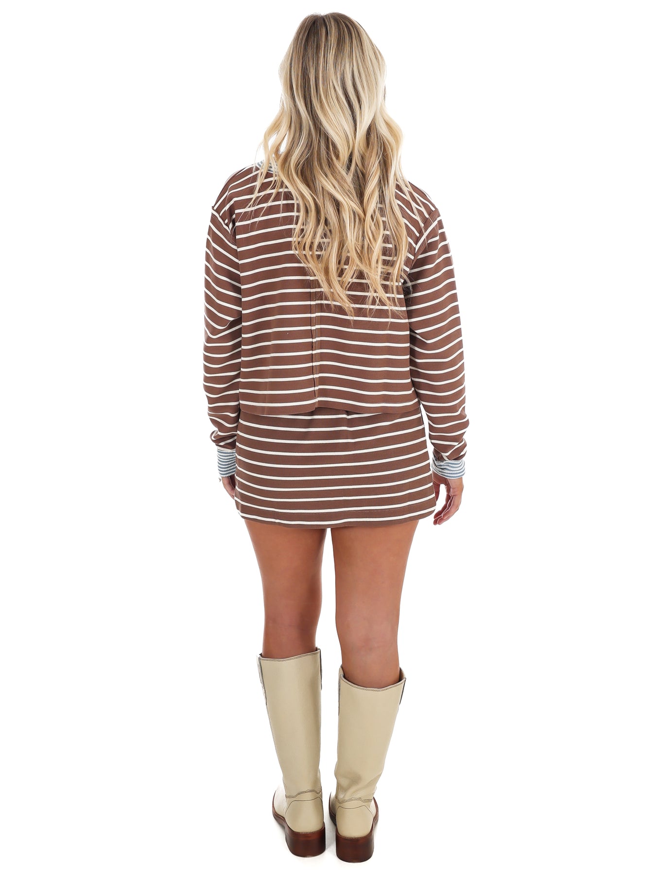 Elevate your style effortlessly with the Cut to the Chase Stripe Two Piece Set. Featuring a chic cropped long sleeve top paired with a flattering mini skirt that includes a convenient drawstring for a customizable fit, this set combines comfort and trend-forward design. Perfect for making a statement at casual outings or stylish gatherings, it offers a fresh, coordinated look that’s both playful and polished.