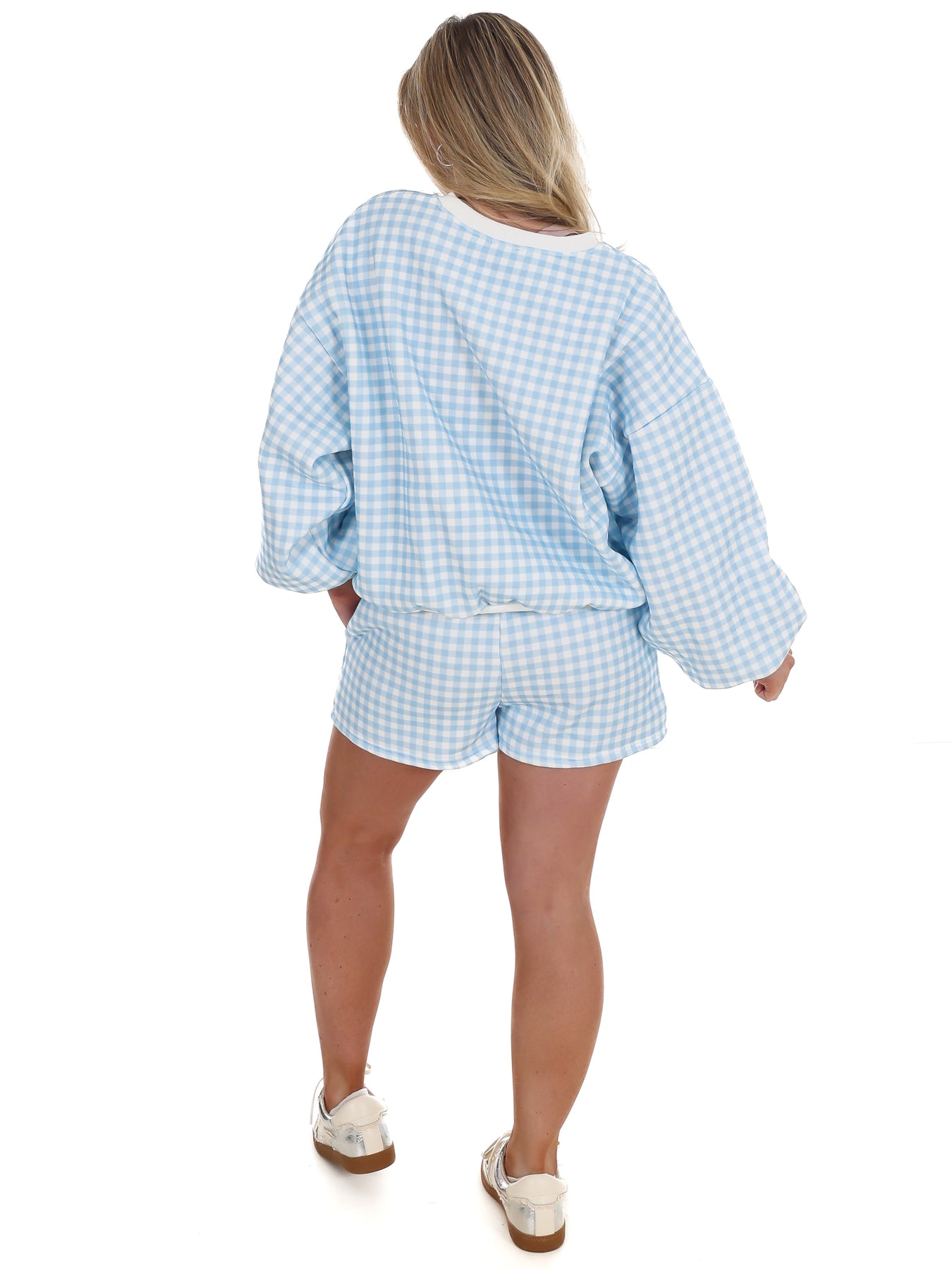 Meet your new favorite way to do nothing. Our Easy Grid Gingham Lounge Two Piece Set is basically a hug you can wear—soft gingham fabric, oversized drop shoulder top, and drawstring shorts that actually fit. The ribbed details keep things polished while you're being anything but, and the pull-on design means zero fuss. Perfect for lazy Sundays, coffee shop runs, or pretending you didn't just roll out of bed. Comfort that doesn't compromise on style.