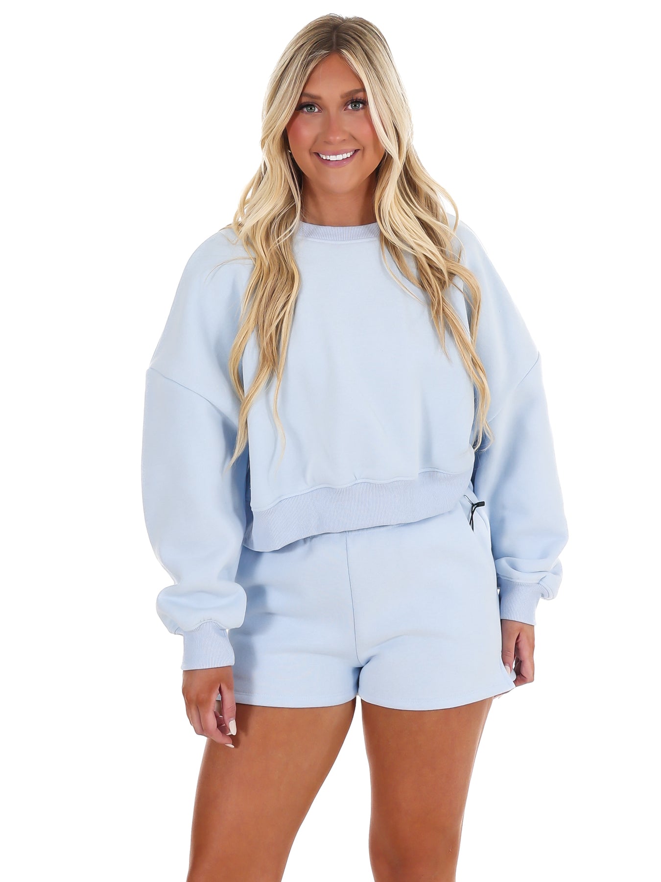Get ready to embrace your chill side with the Mellow Mood Fleece Two Piece Set. This cozy combo pairs a roomy crewneck sweatshirt with sumptuous fleece lining alongside trendy shorts featuring functional side pockets. Whether you're binge-watching your favorite show or keeping it casual, this set delivers maximum comfort without sacrificing style. Your new go-to for feeling good, looking good, and staying snug.