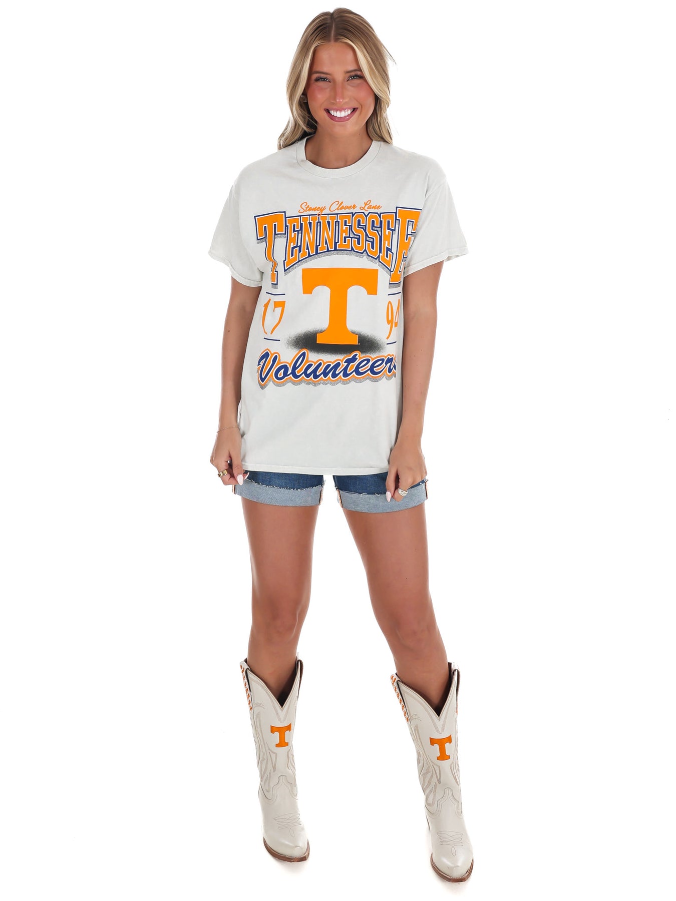 Show off your Tennessee spirit with the '47 x Stoney Clover Lane Tennessee Glitter Spirit Vintage Tee. Featuring glitter details and a vintage-inspired design, this tee offers both style and comfort. Perfect for fans looking to add a standout piece to their casual wardrobe, it brings a sparkling touch to your game day or everyday look.