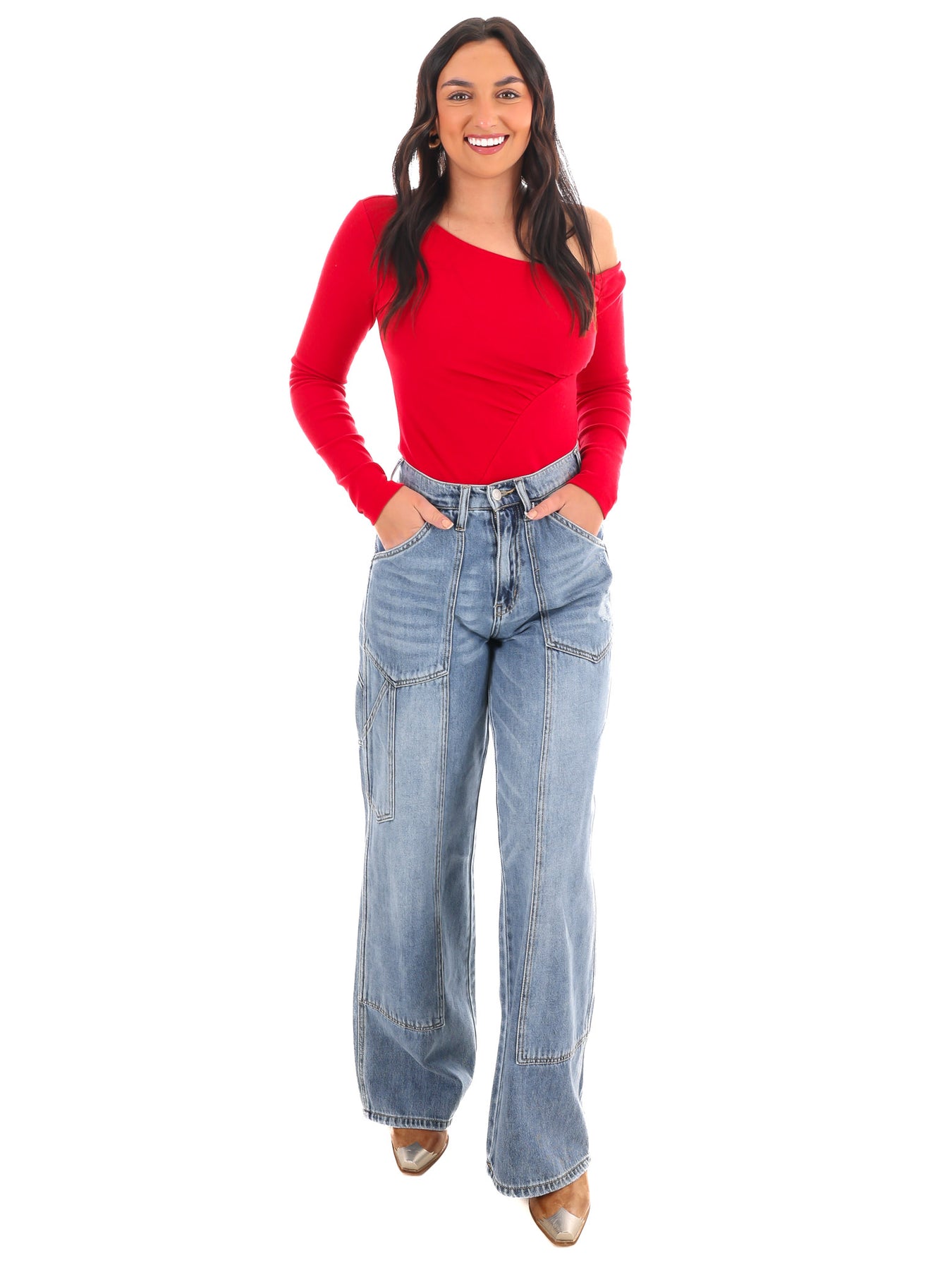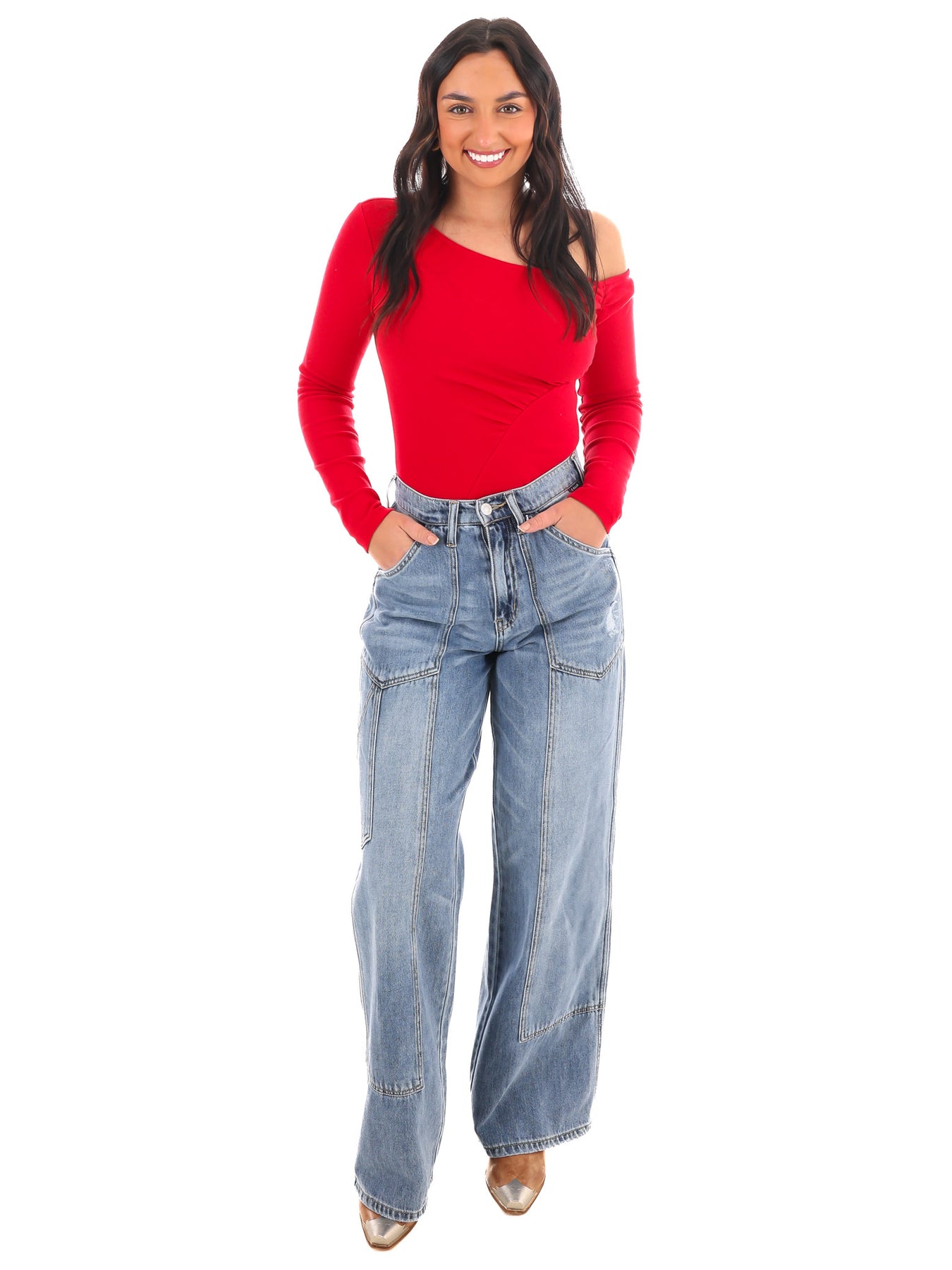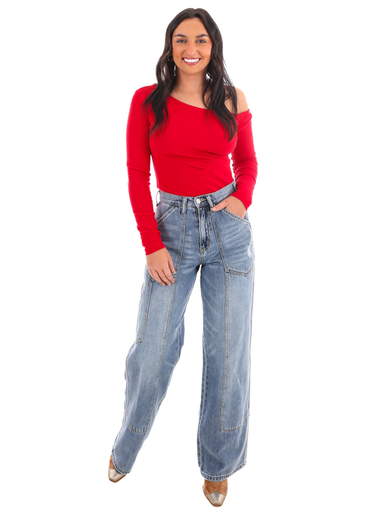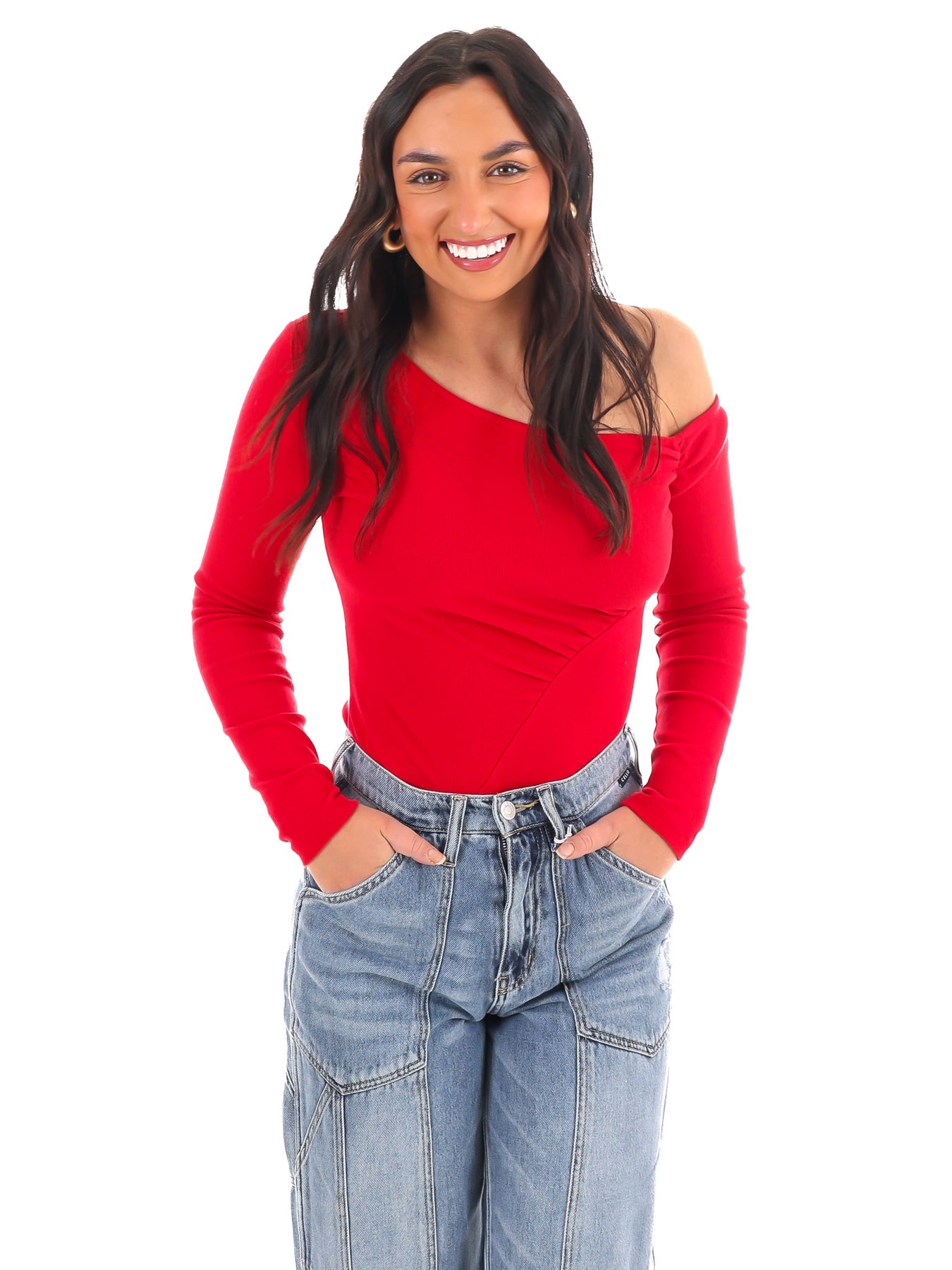 Cover all your bases with this playful and practical All She Wants One Shoulder Bodysuit. With a unique one shoulder design and long sleeves, this bodysuit is perfect for any occasion. Stay stylish and comfortable all day long.