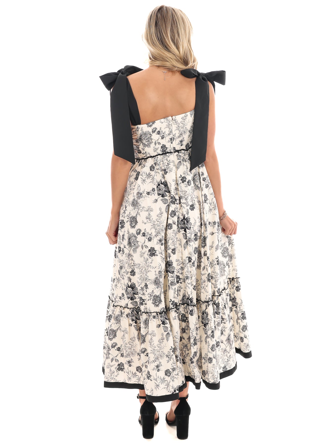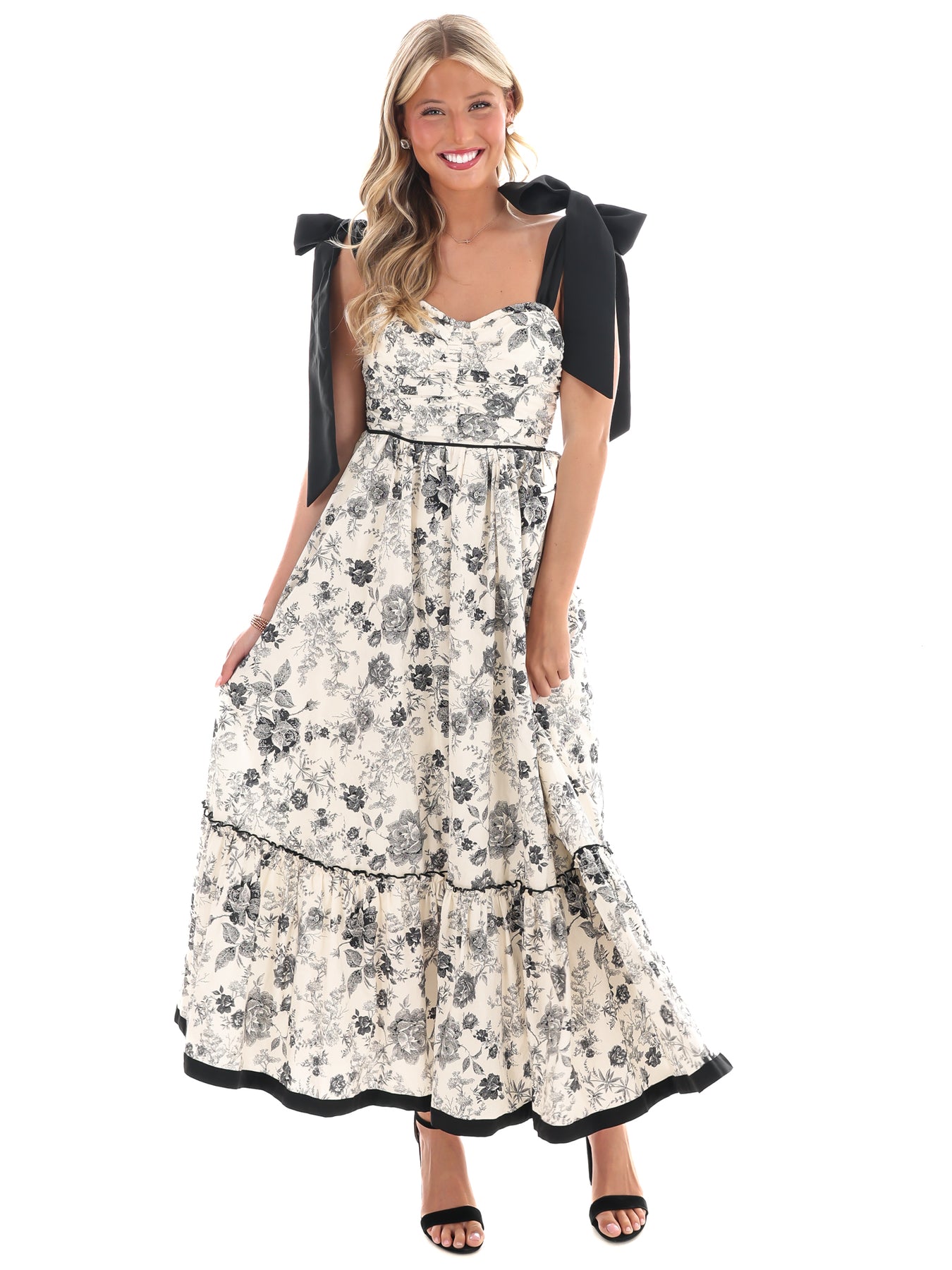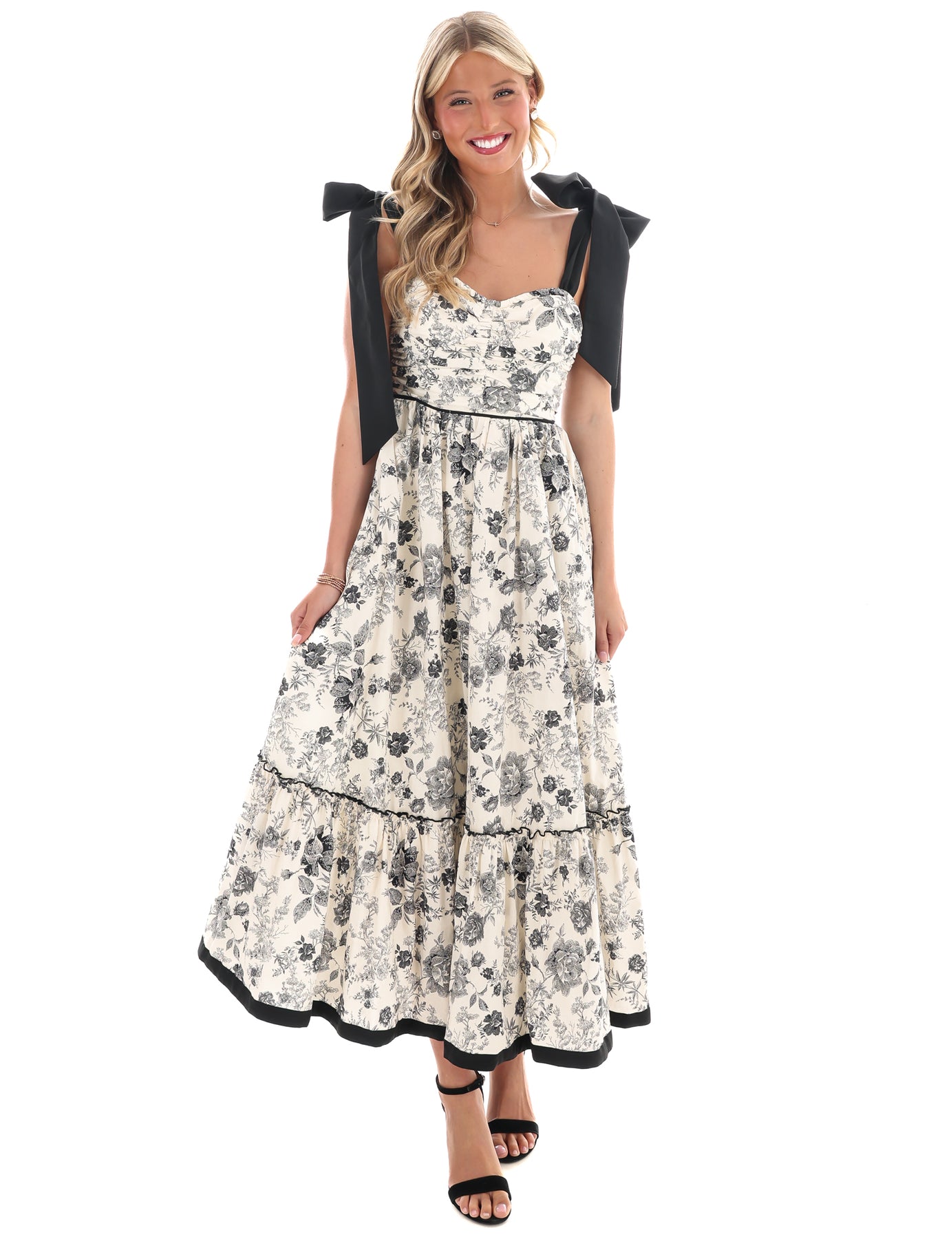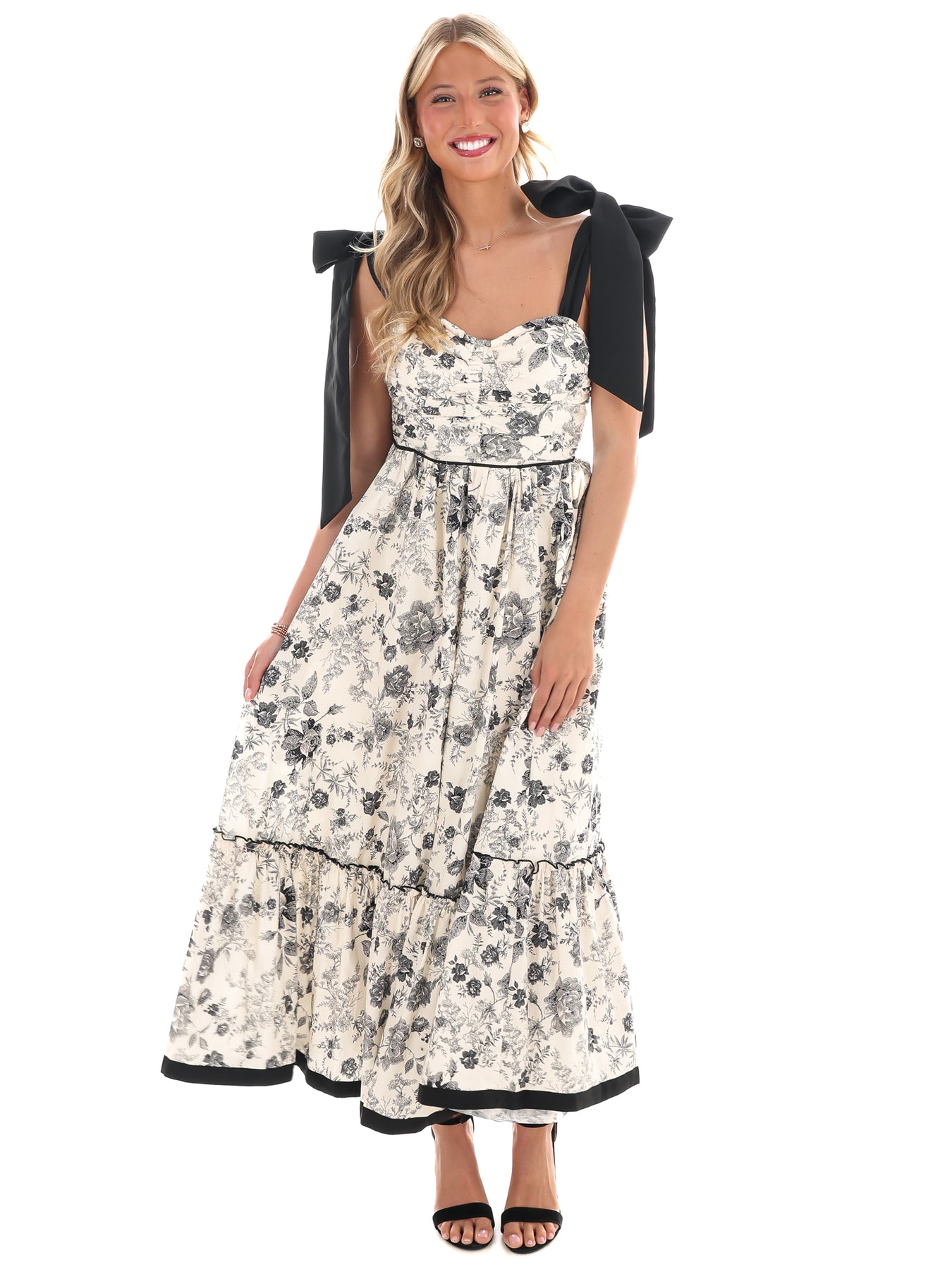 Indulge in the elegance of our Antique Markets Floral Maxi Dress. Featuring a flowy and feminine design, this dress is adorned with delicate floral prints and a contrast ribbon strap for added charm. Elevate your style and captivate the senses with this stunning piece.
