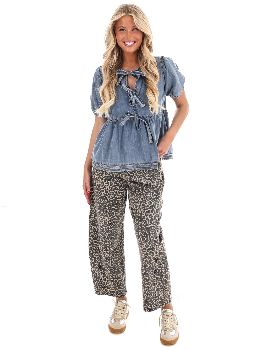 Get ready to show off your playful side with our Bow & Indigo Denim Top! Featuring short puff sleeves, a washed denim design, and a cute front bow tie, this top is perfect for adding a touch of fun to any outfit. Stay stylish and unique with this quirky and trendy piece!