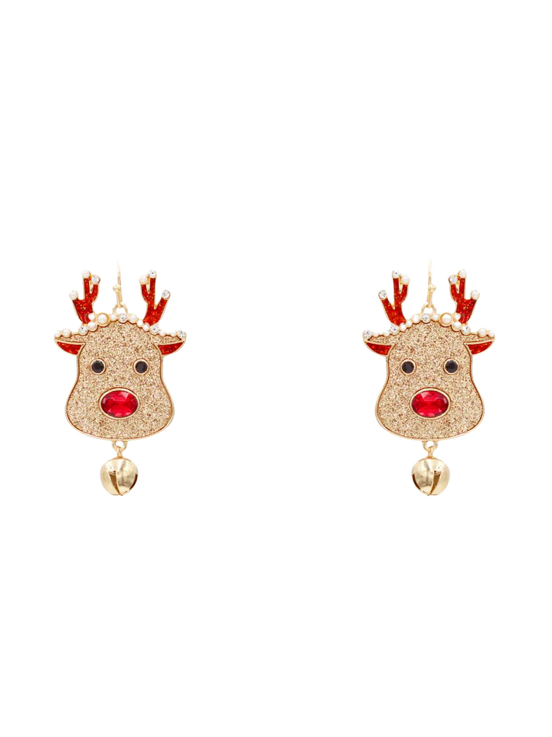Add some festive flair to your holiday outfit with these Christmas Rudolph Glitter Dangle Earrings! These playful earrings feature cute Rudolph designs with a touch of glitter, making them the perfect accessory for any Christmas party or event. Spread some holiday cheer with these quirky earrings!