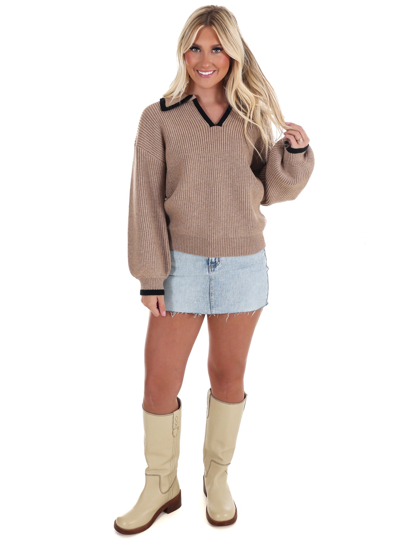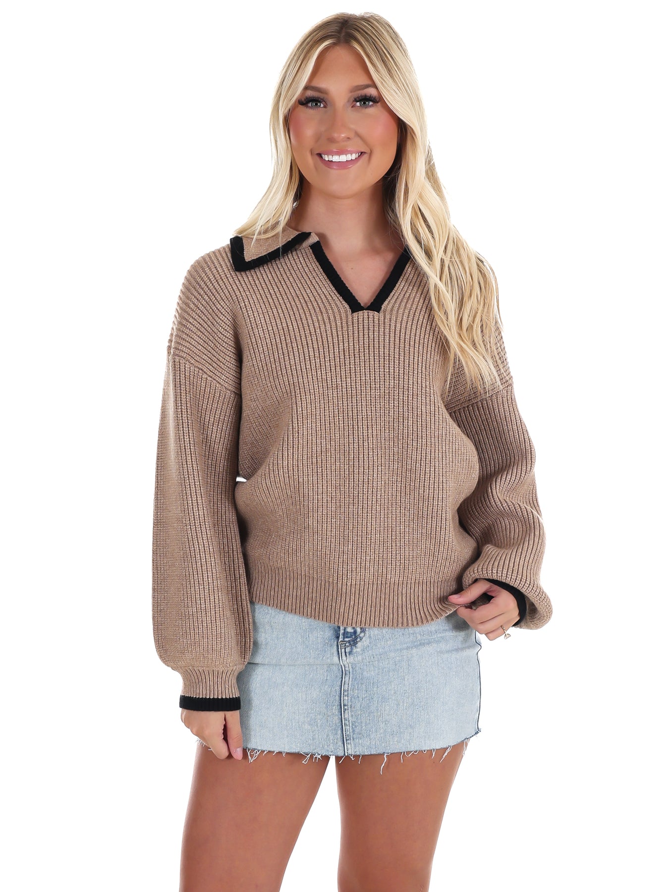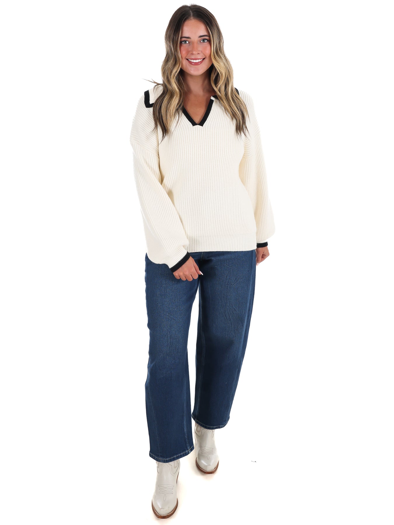 Step out in style with the City Stroll V-Neck Sweater, a cozy knit top designed for those who love a touch of flair. Featuring long sleeves and a sharp collar, it’s detailed with a playful edge contrast line that adds a pop of personality to your outfit. Perfect for cool days when you want to be comfy but still turn heads on your city adventures.