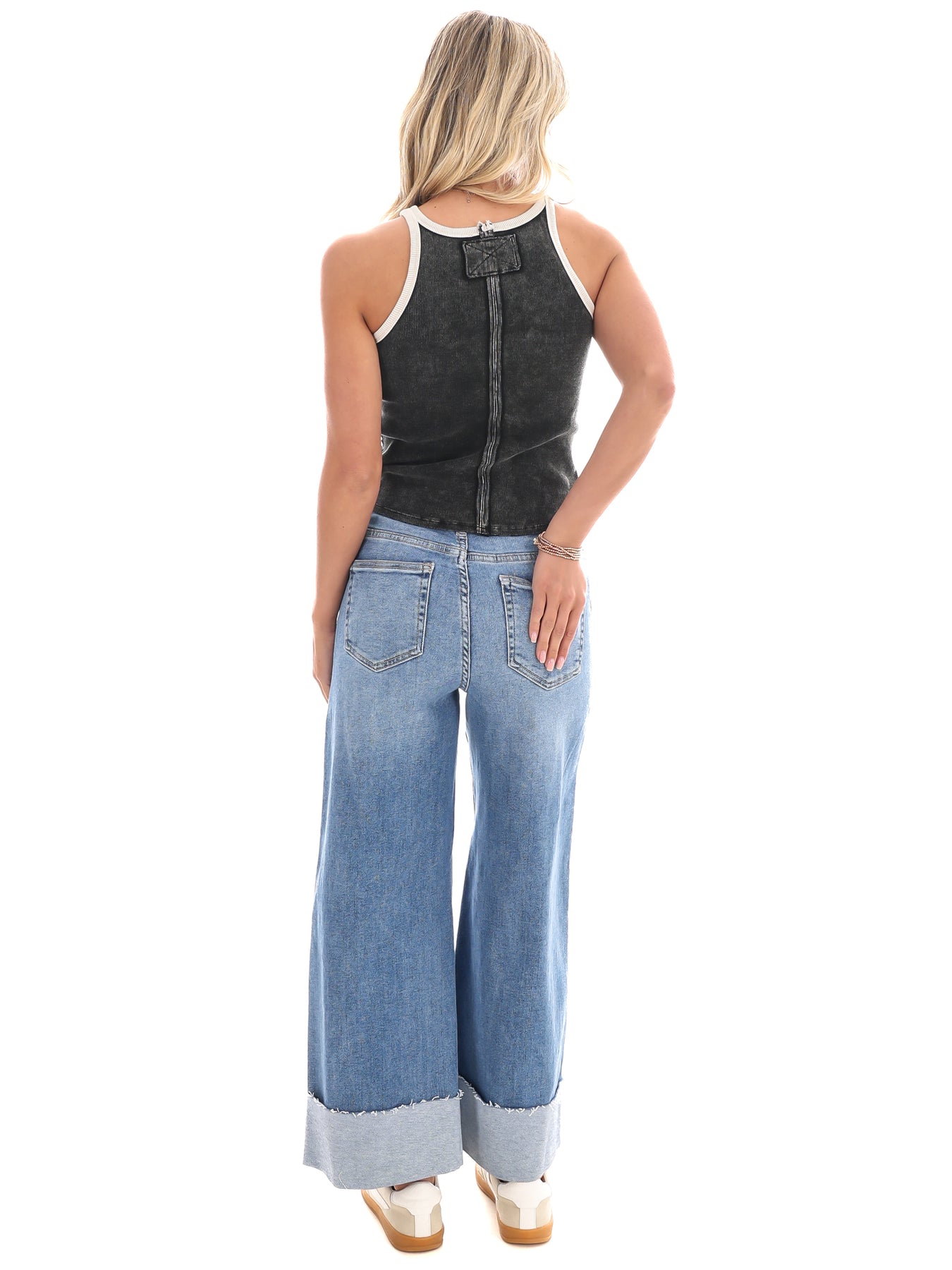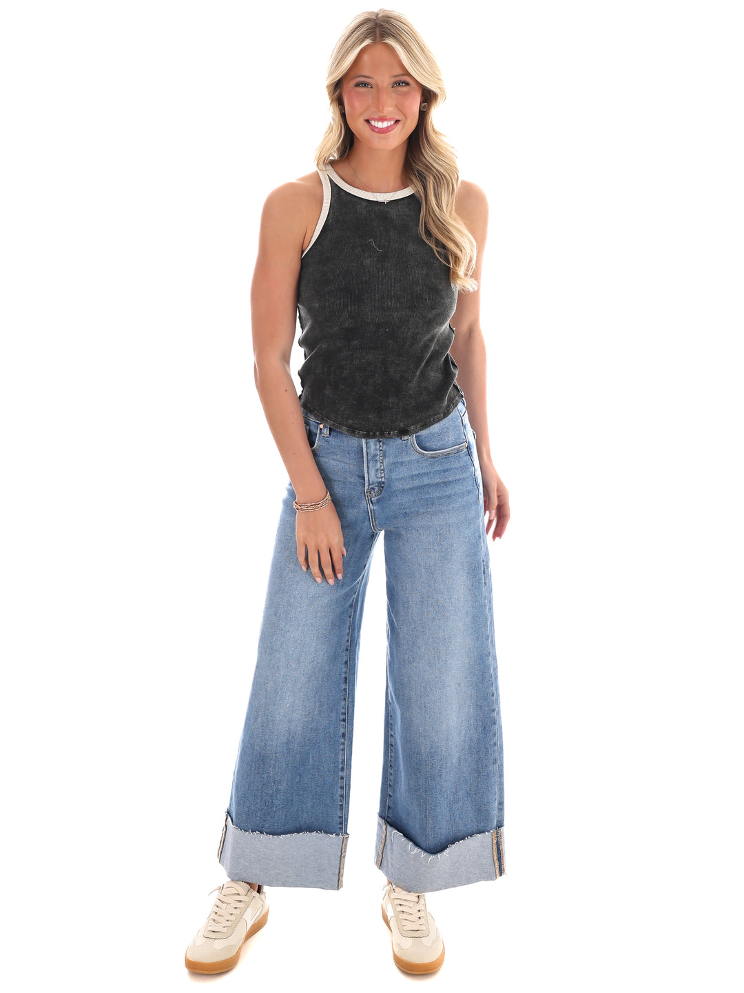 The Dear Diary tank top features a ribbed design with stylish blue accents on the neckline and straps. Perfect for adding a pop of color to any outfit, this tank is both comfortable and fashionable. Keep your diary close and your style even closer with this must-have top!