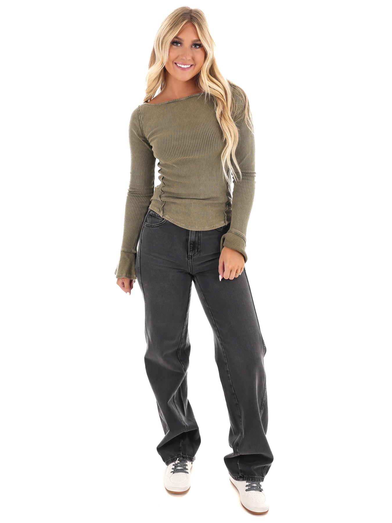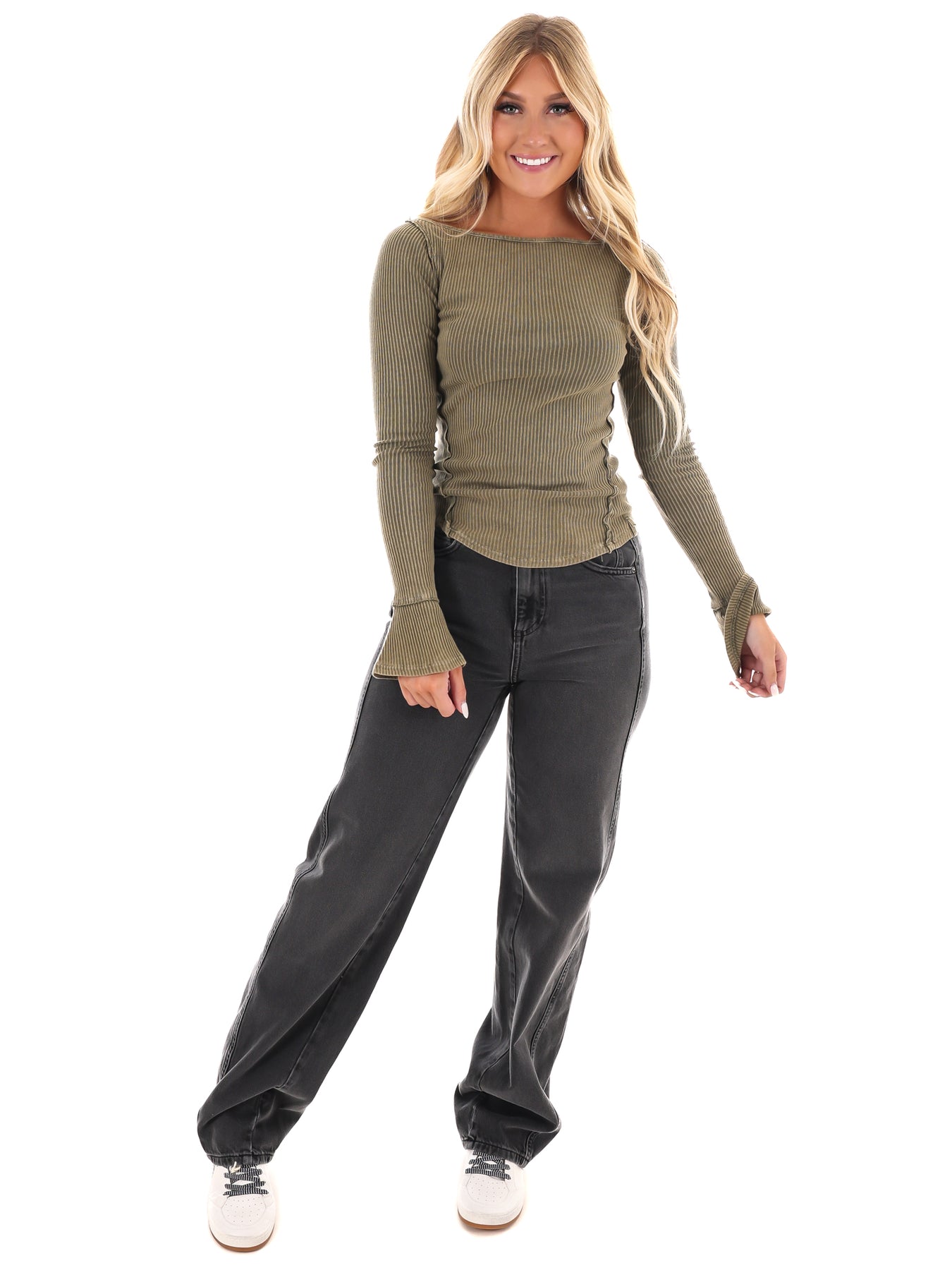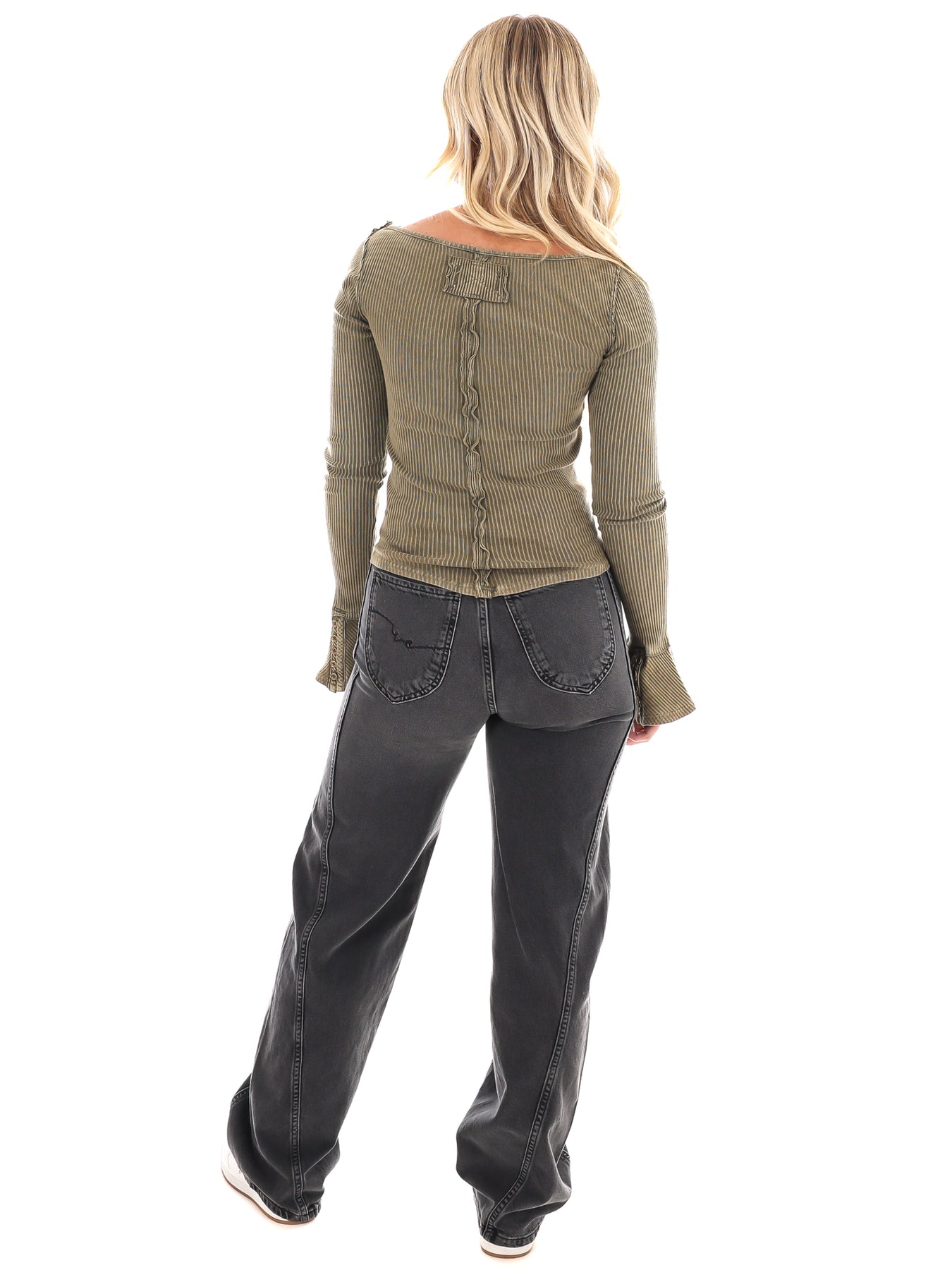 So essential from Free People's We The Free collection, this long-sleeve is featured in a ribbed fabrication and slim-fitting silhouette with bell-shaped sleeves and exposed seams throughout.