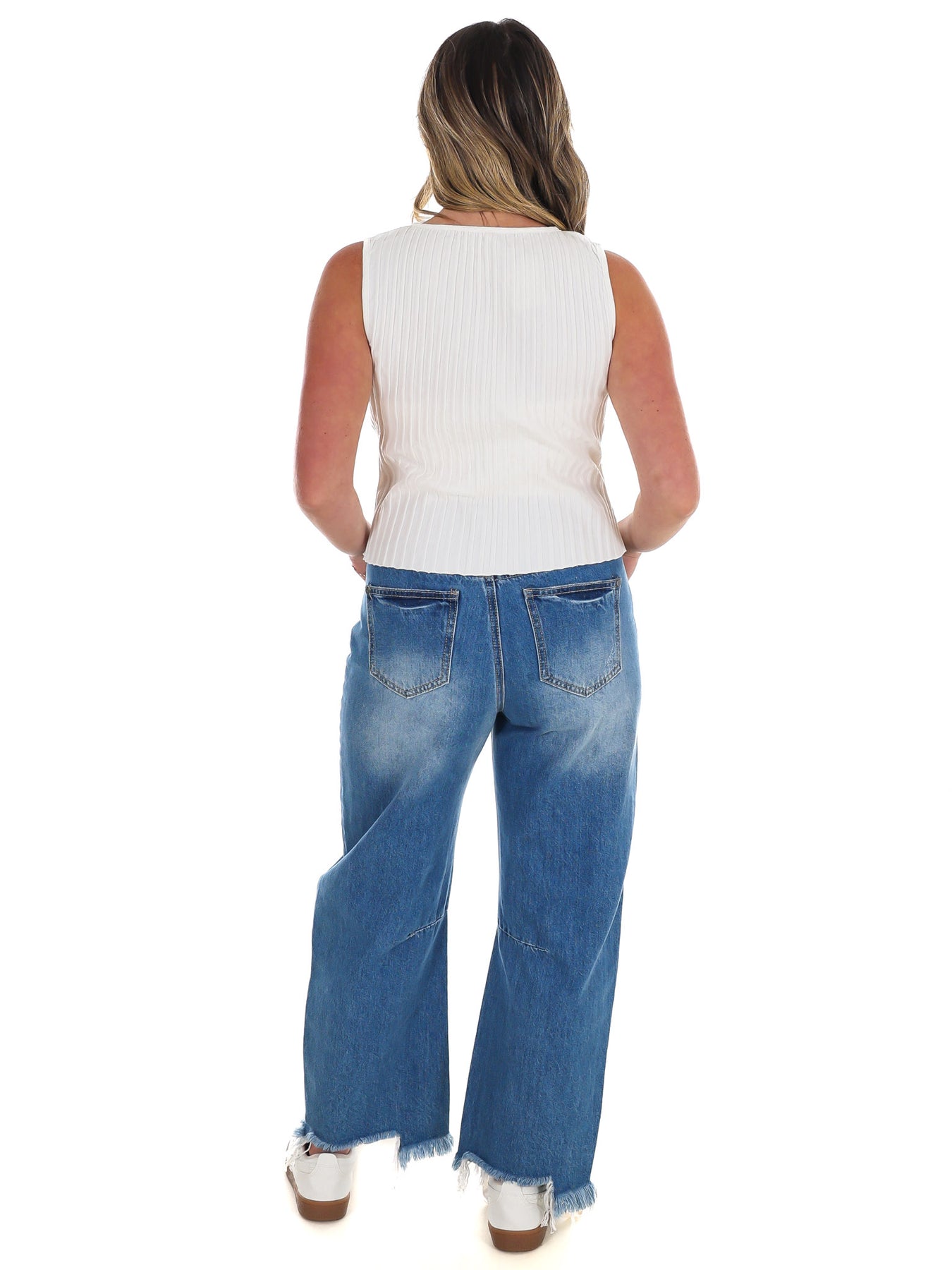 Features: Ribbed knit fabrication with a stretchy feel, scoop-neckline, button-front closures