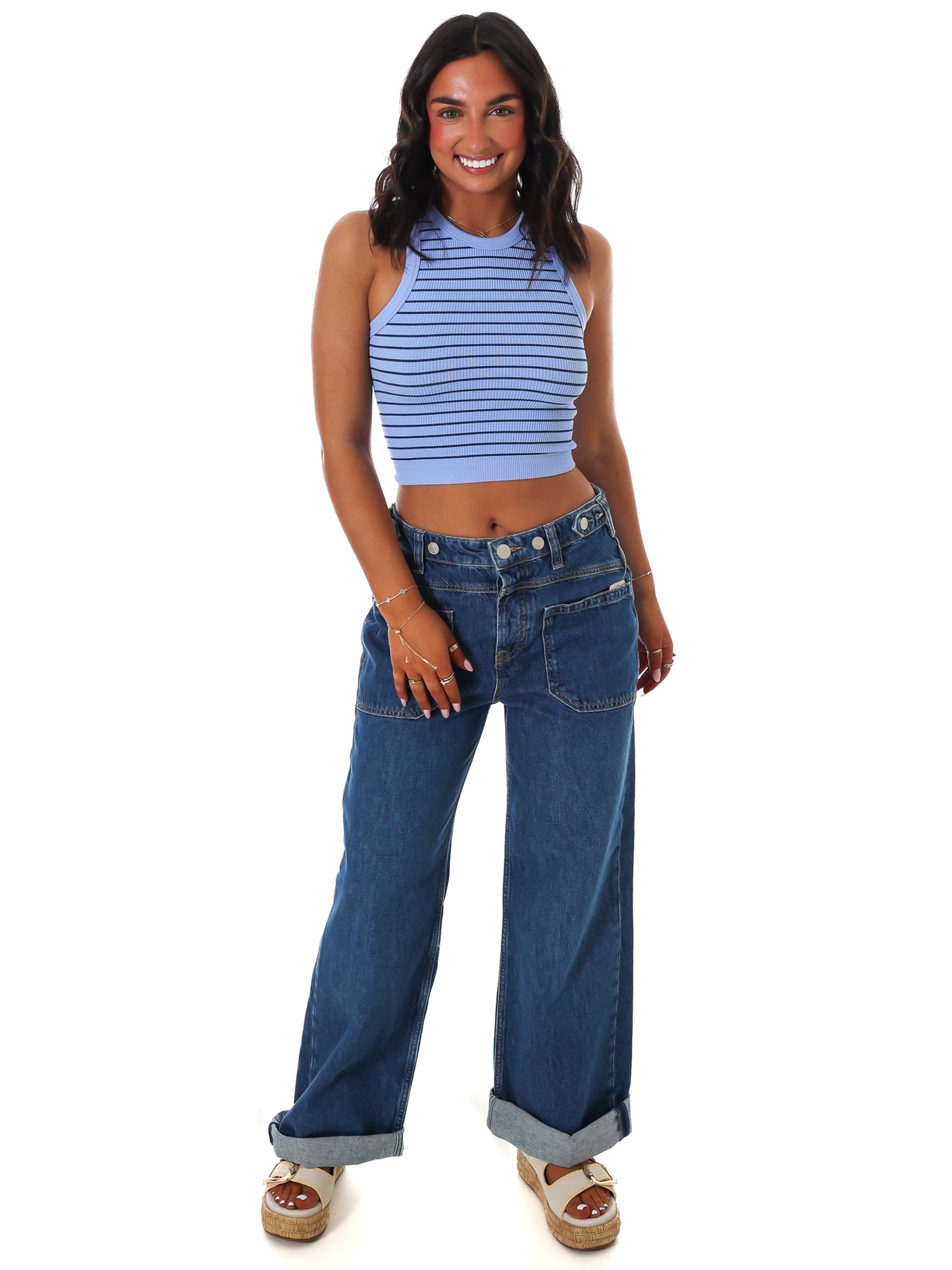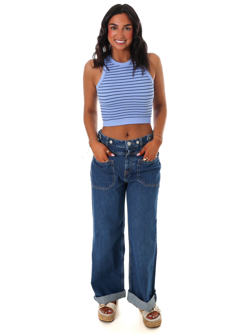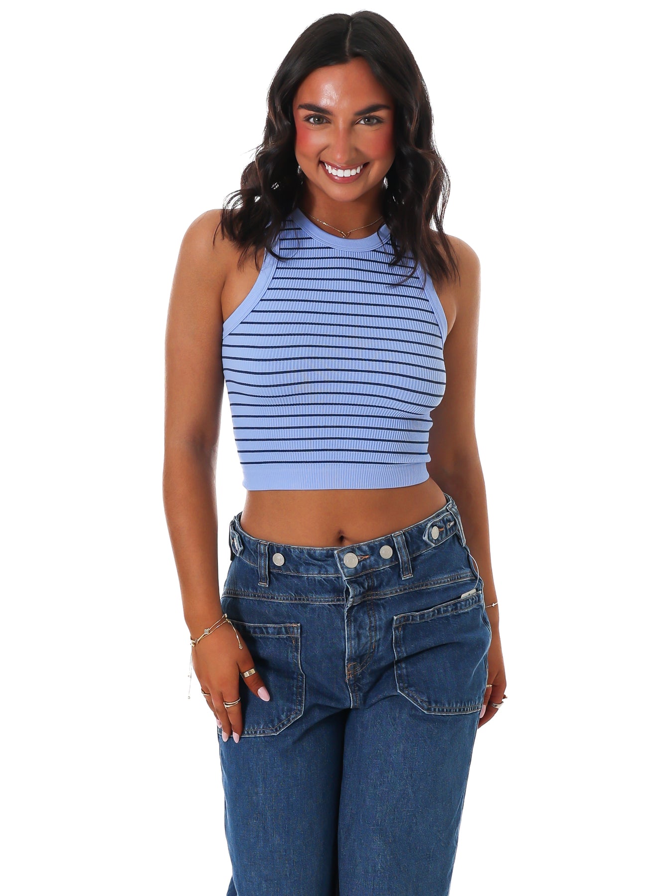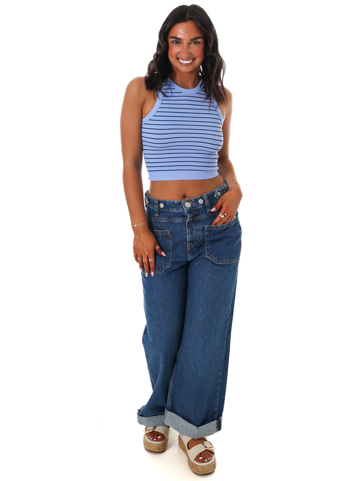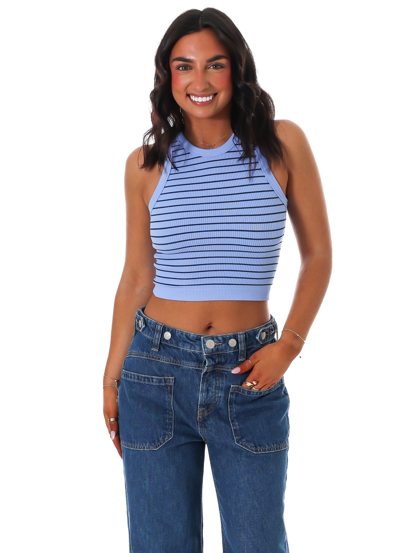 A playful twist on a classic, this striped cropped cami from Intimately features a flattering, form-hugging fit for comfort and style.