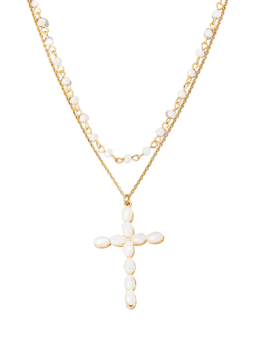 Glass Beaded Cross And Chain Layered Necklace