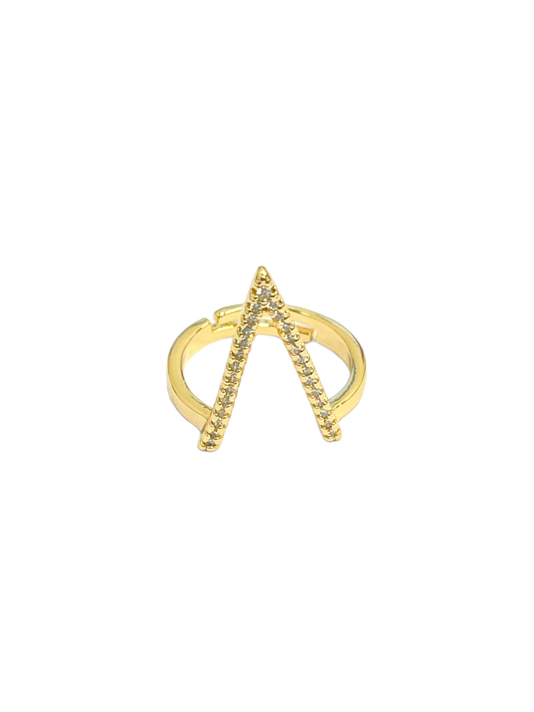 Look your best and keep your "high hopes" with this stunning rhinestone V adjustable ring! Shine like the star that you are with this beautiful and versatile piece that can be worn with any style. Make a statement with this dazzling ring!