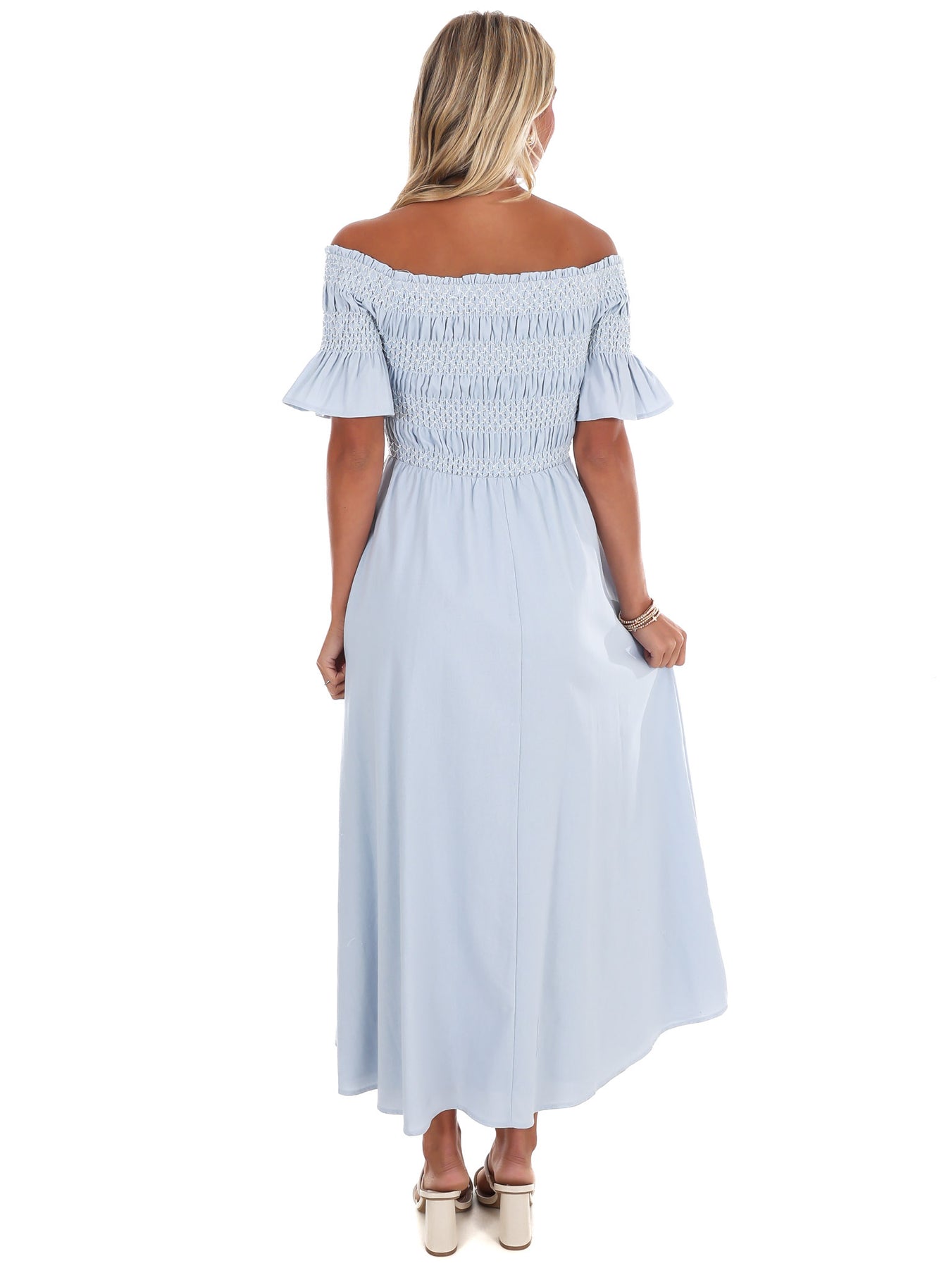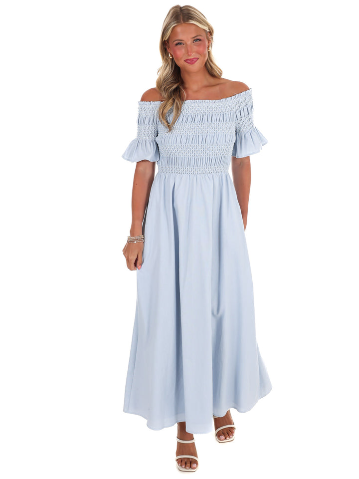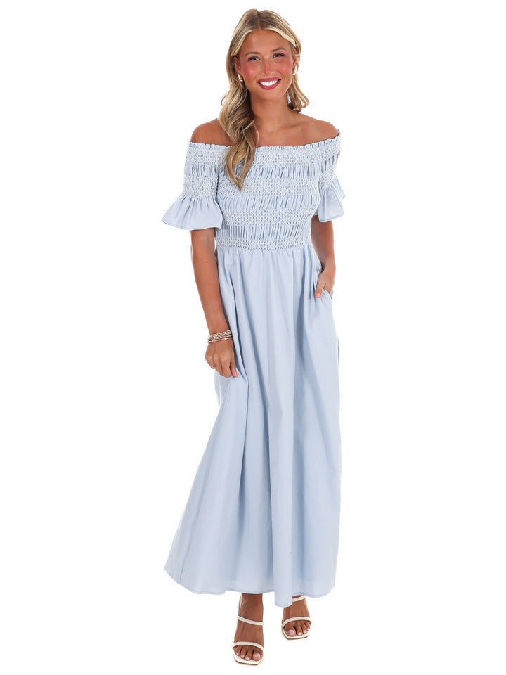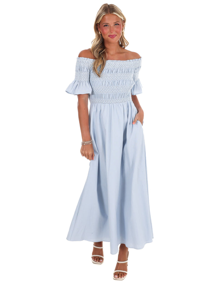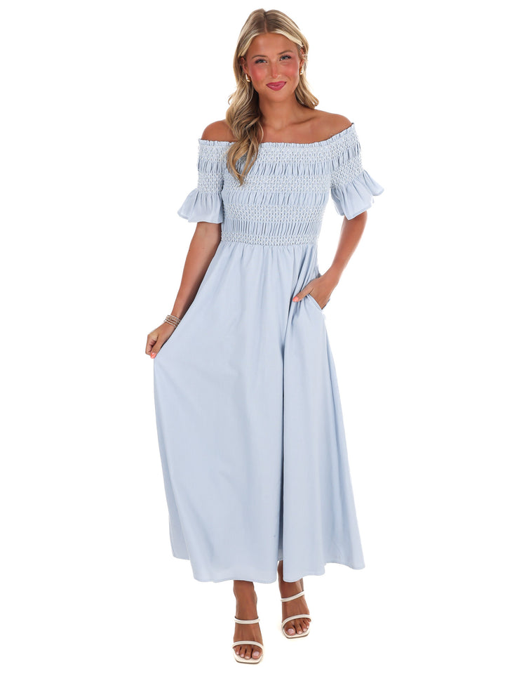 Indulge in moments of peace and tranquility with our In the Quiet Moments Maxi Dress. Made from luxurious linen fabric, this off shoulder dress features a special smocked bust detail and is fully lined for added comfort. Plus, with convenient pockets, you can easily carry your essentials without sacrificing style.