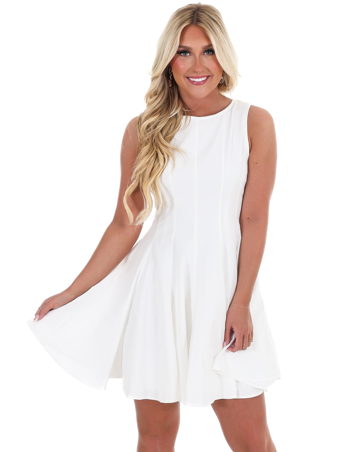 Unleash your inner confidence with the Leap of Faith Flare Mini Dress. Crafted in lightweight crinkled fabric, this mini dress features a flattering fit and flare style that will highlight your natural curves. With a back zipper closure and full lining, you'll feel comfortable and chic all day long.