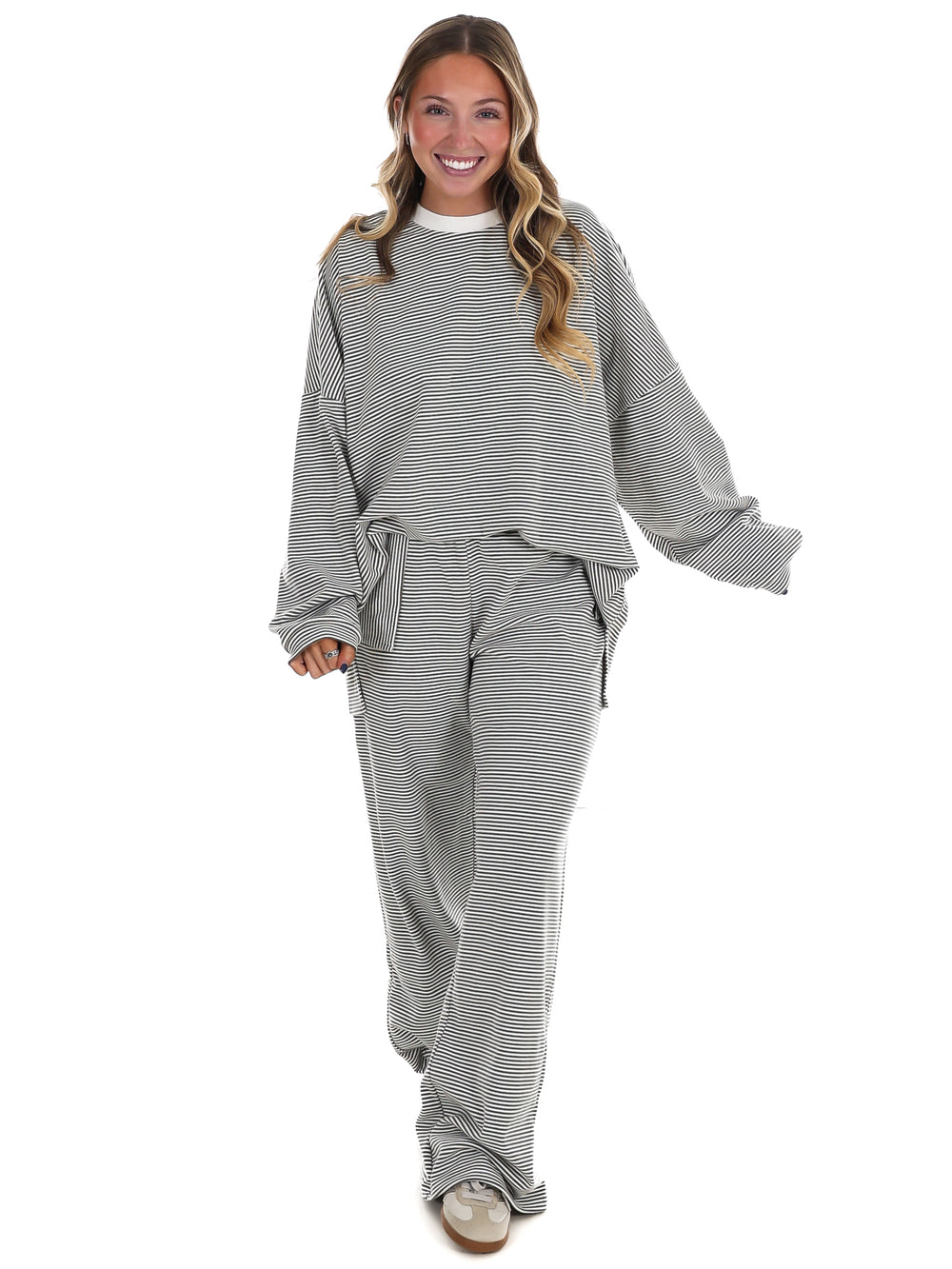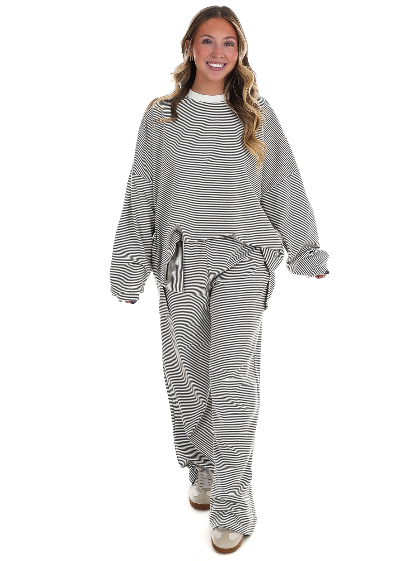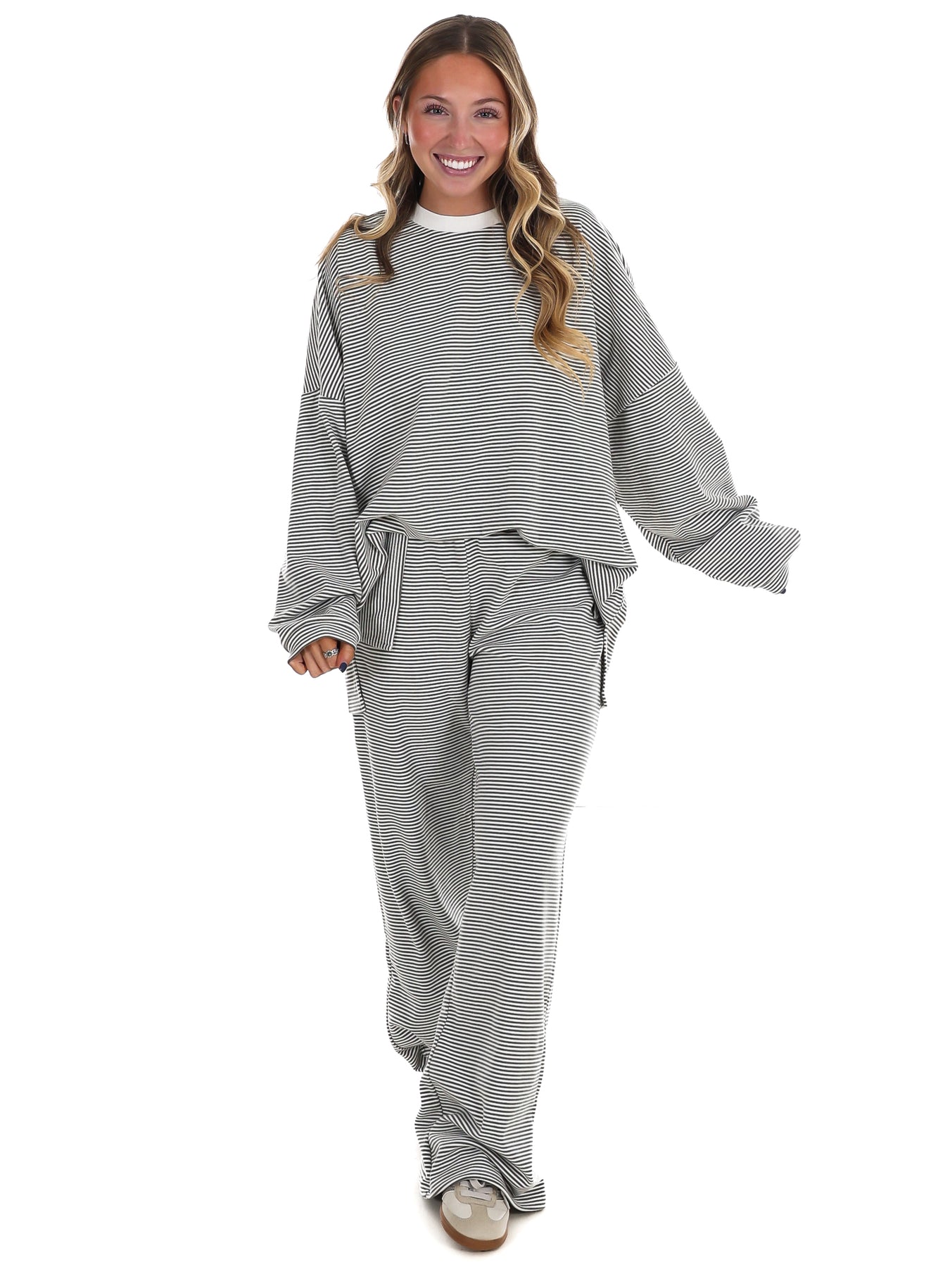 Throw on this striped oversized top and feel like you're wearing a cloud. The ultra-soft fabric hugs you in all the right ways—loose enough to move freely, cozy enough to live in. Perfect for lazy days, coffee runs, or whenever you want to look effortlessly put-together without trying too hard. Stripes never go out of style, and neither does comfort.