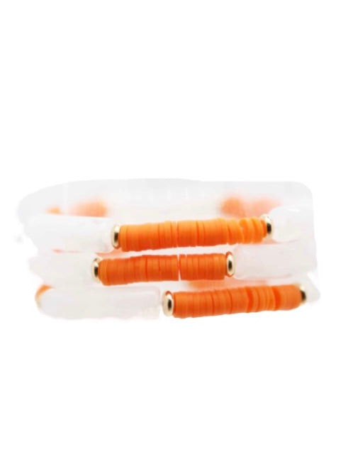 Make a fashion statement on game day with our Orange and White Stretch Bracelet! Show your team spirit with this stylish stack bracelet, featuring alternating colors that will speak volumes without ever having to cheer. Rock out with this one-of-a-kind accessory and rep your Tennessee pride! #GoVols!!