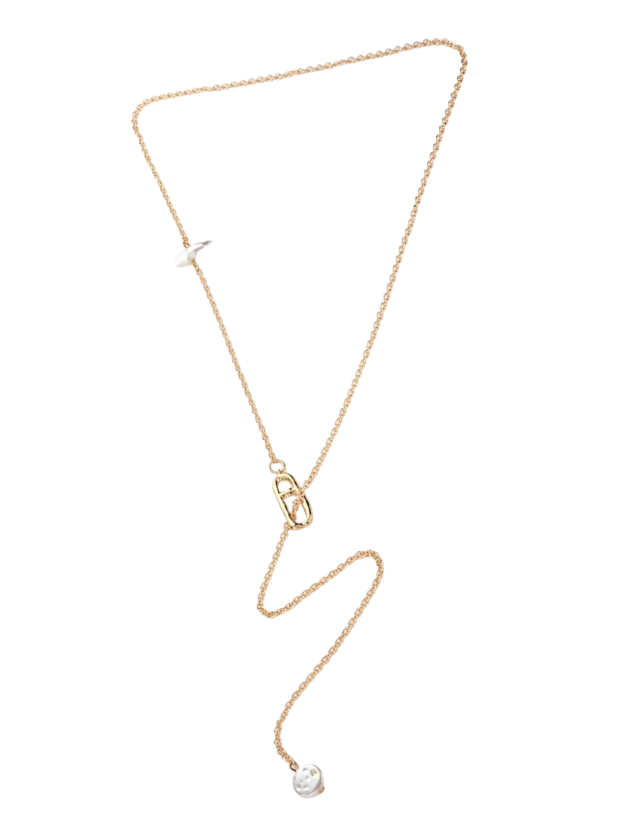 Elevate your look with our exquisite Pearl Long Chain Necklace! This stunning necklace features lustrous pearls on a delicate long chain, perfect for adding a touch of elegance to any outfit. Upgrade your style and make a statement with this must-have accessory.