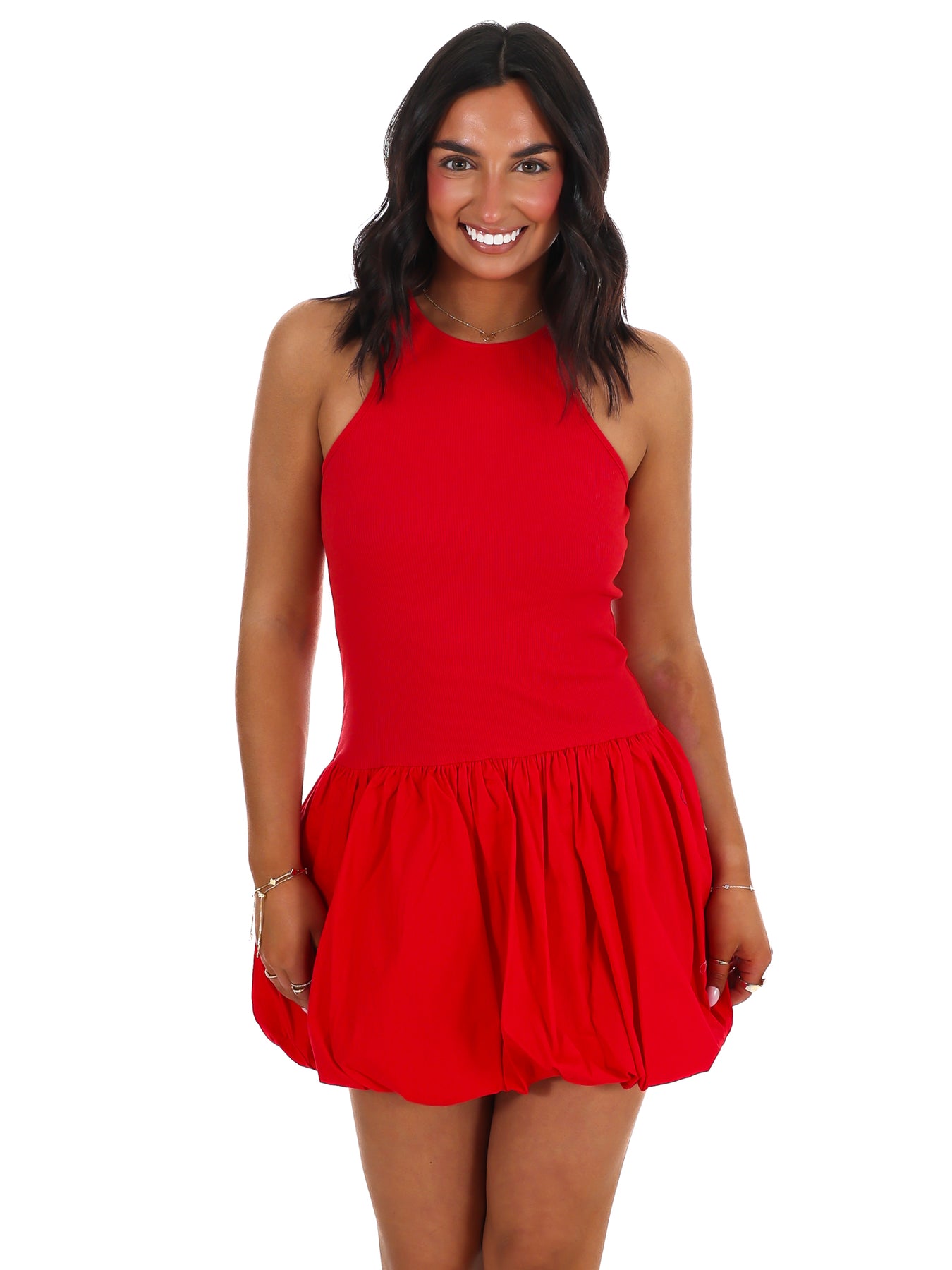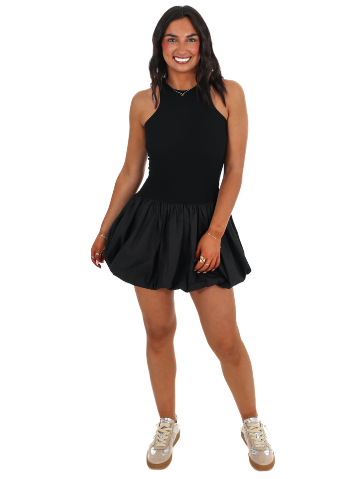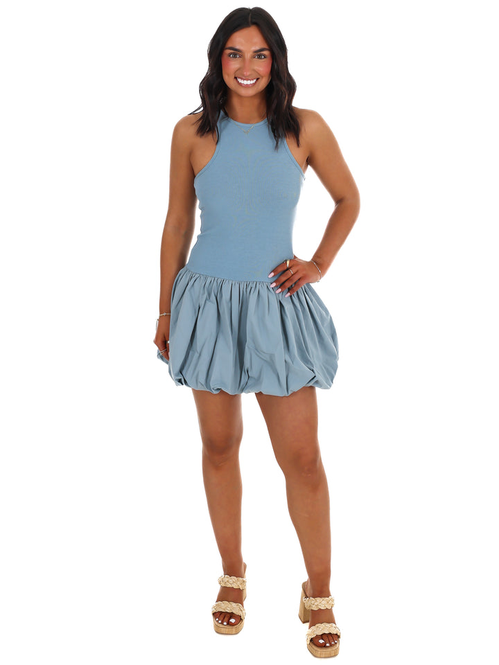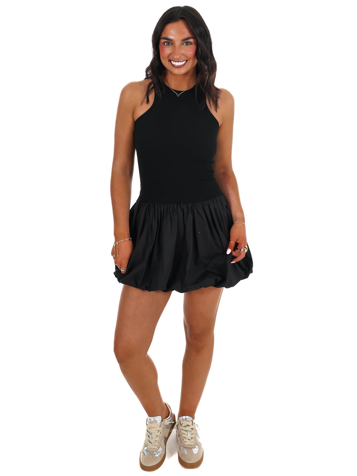 Be fashionably punctual with our Right on Time Bubble Hem Mini Dress! This sleeveless mini dress features a round neckline, fitted bodice, and a voluminous skirt with a unique bubble hem. Stay comfortable and stylish with added lining.