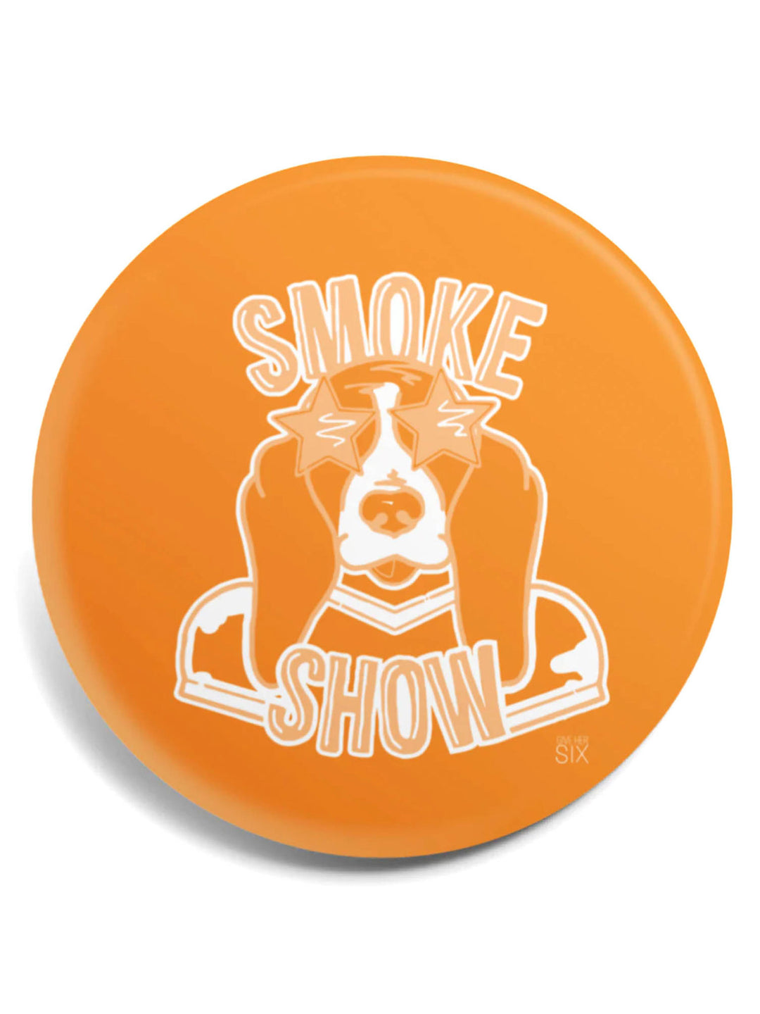 Ready to show your Hound Dog pride? Our "Smoke Show" button is perfect for showing your love for Tennessee Football! This hound dog-themed button is an eye-catching accessory that'll add a playful touch to any outfit. Go ahead and show off your spirit - you know it's gonna be a smokin' hot time with this button!