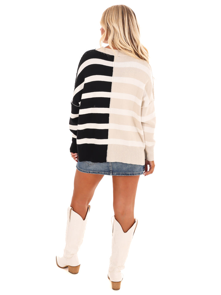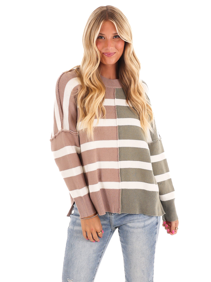 Get cozy and stylish with our Stripes of Style Colorblock Sweater! This long sleeve sweater features playful striped color blocking, a ribbed round neck, and added seams for a unique touch. With ribbed cuffs, two side slits, and a ribbed bottom band, this sweater is both comfortable and chic.
