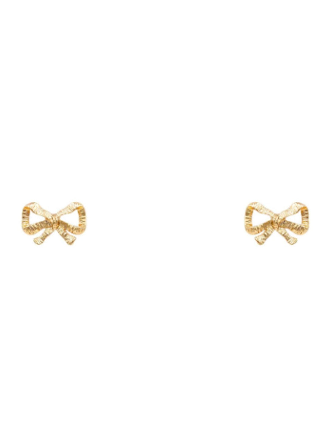 Add a touch of whimsy to your look with our Textured Ribbon Stud earrings. Made with stunning gold, these studs bring a playful yet elegant vibe to any outfit. Step up your style game with these unique textured earrings. (Can you say #earringgoals?!)