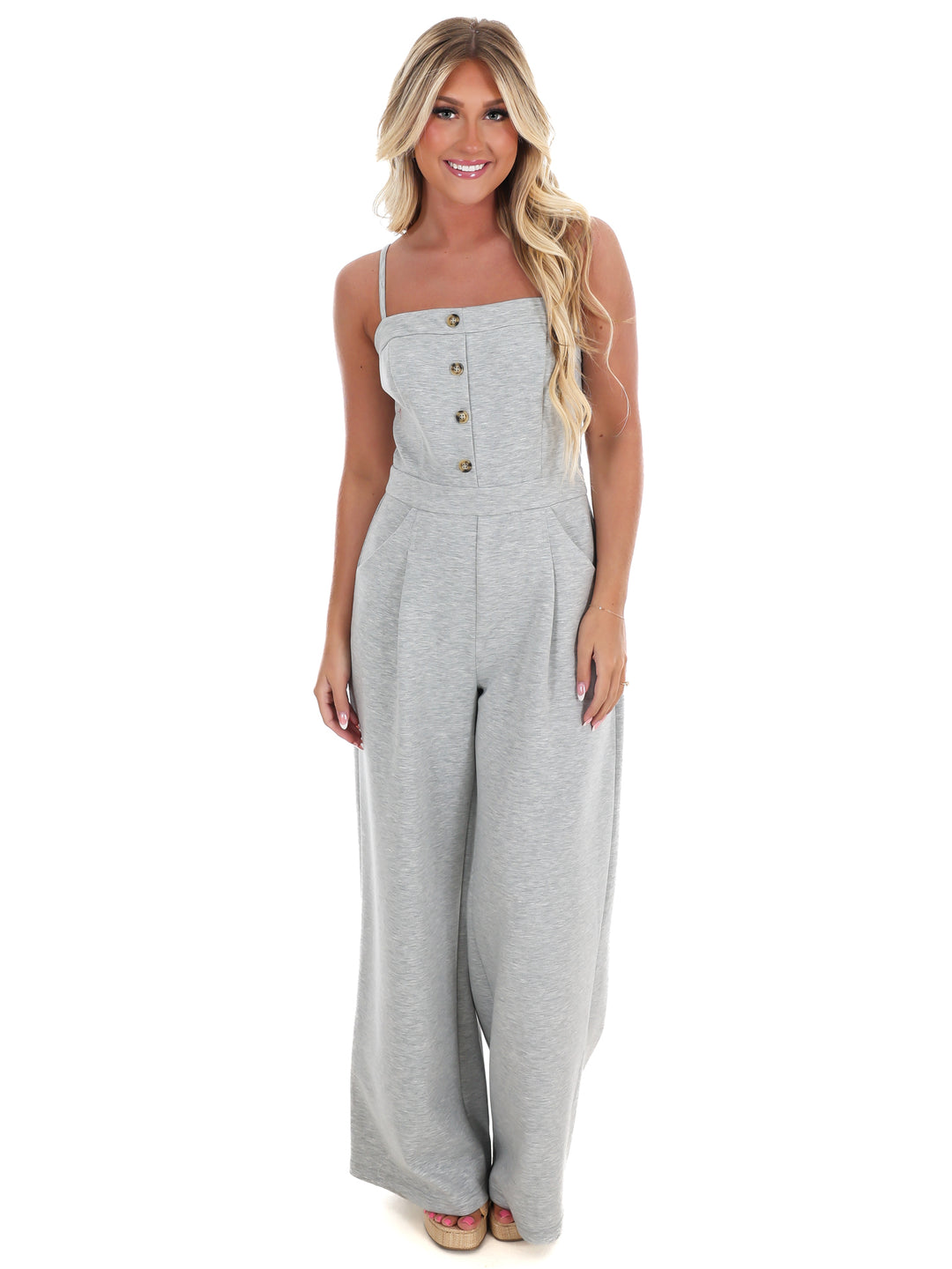 Indulge in effortless style with our Time to Shop Knit Jumpsuit. This solid knit jumpsuit features a flattering straight neckline with straps, complimented by button front detailing and convenient side pockets. With its wide leg design and back zipper, this jumpsuit offers both comfort and chic style.