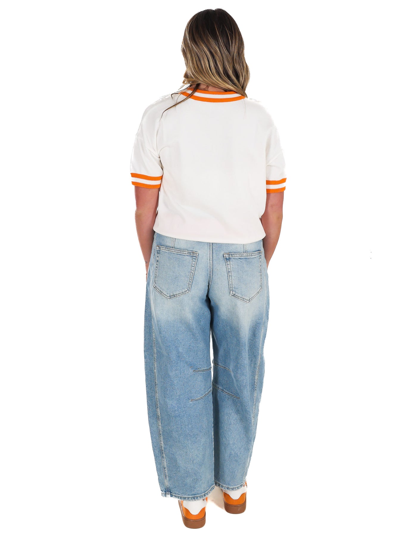 Preppy meets powerful in our newest Varsity Sweater. Featuring bold contrast striping, a flattering V-neckline, and a bubble hem for a fashion-forward finish, this sweater blends tradition with trend. Perfect for dressing up your look without losing that cozy factor—it's spiritwear, styled to perfection.